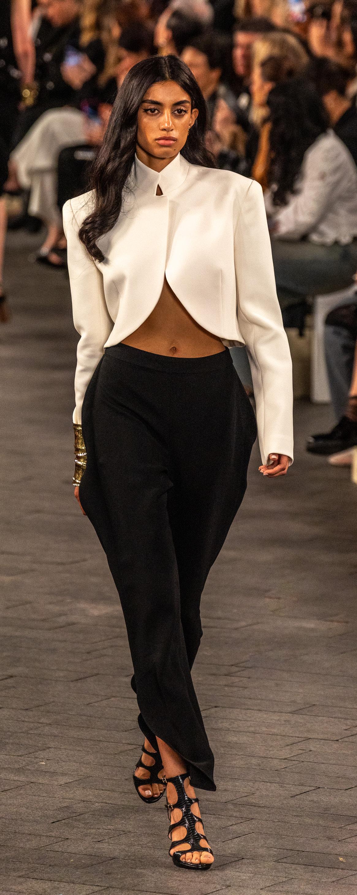 The collection drew on house signatures; sculptural silhouettes, structured tailoring, and rich fabrications, reworked with a modern point of view. It was evening and everyday wear designed for today: powerful, sharp, and relevant. The vision remains consistent, to help women feel like the most confident version of themselves.