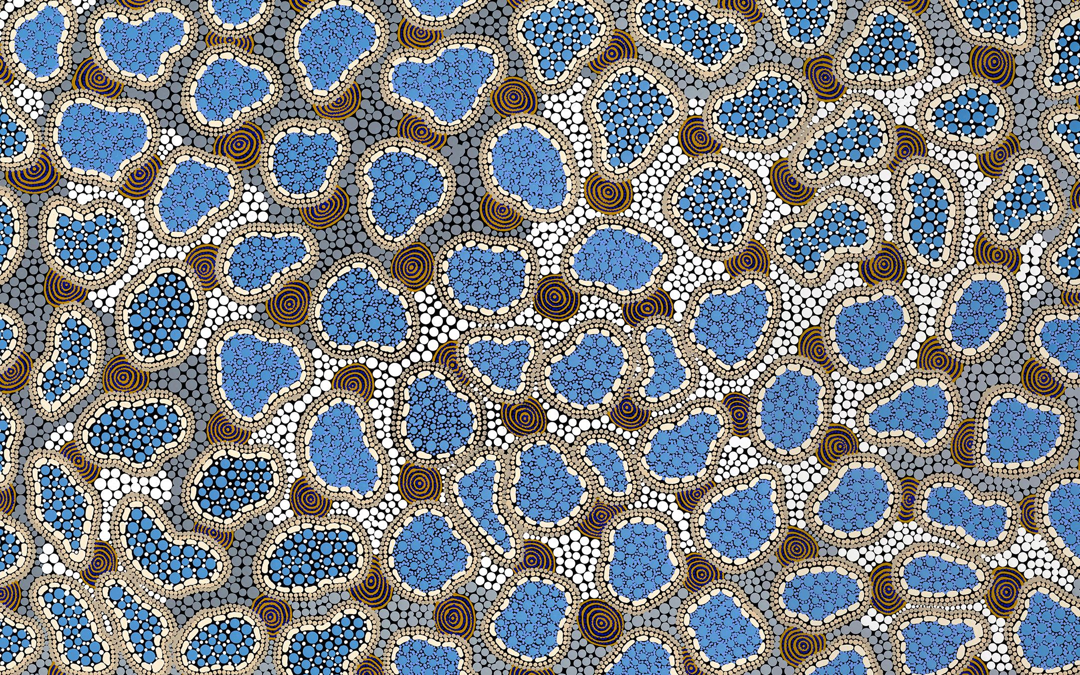 Most recently, Goompi exhibited alongside some of the most celebrated figures in Aboriginal art history. His pieces featured in Connection, the immersive visual and sound experience presented at The Lume in Melbourne,