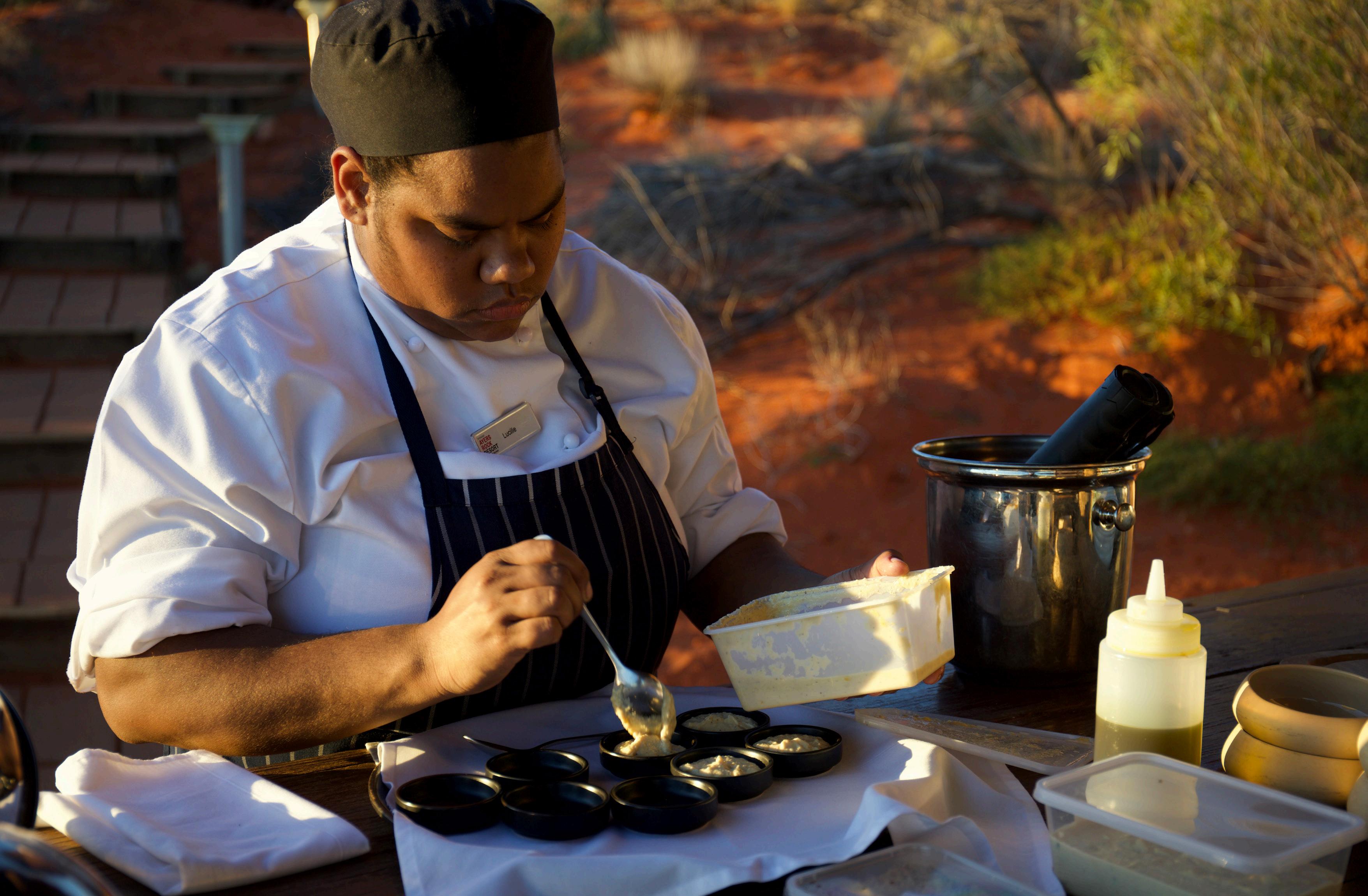 Desert Gardens Hotel offers the only rooms with views of Uluru, set among native gardens and ideal for those seeking a peaceful retreat. The property has an exquisite food offering in either of its restaurants - Mangata or Arnguli for an elevated dining experience. For families or longer stays, Emu Walk Apartments provide self-contained accommodation with kitchen facilities and modern comforts. Budget-conscious travellers can opt for the Outback Hotel, which delivers a relaxed, social atmosphere, or The Lost Camel Hotel, a contemporary boutique-style stay. For nature lovers, the Ayers Rock Campground offers powered sites, cabins, and tent spaces under the stars.