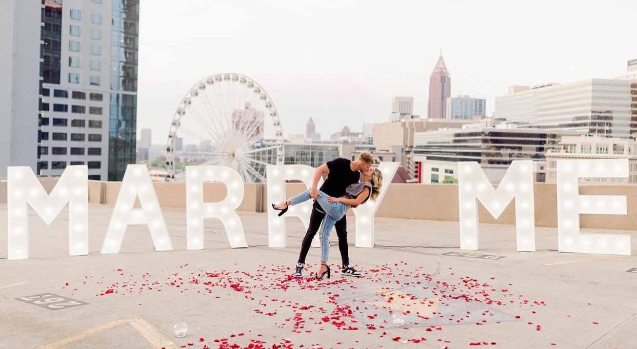 Ethan proposed in December under the big Christmas tree in downtown Athens. Ethan’s sister called in a favor and had a videographer stationed far enough away so Jasan didn’t get suspicious. He also had a group of friends and family hiding around the block so that after she said yes, they came out to celebrate.
