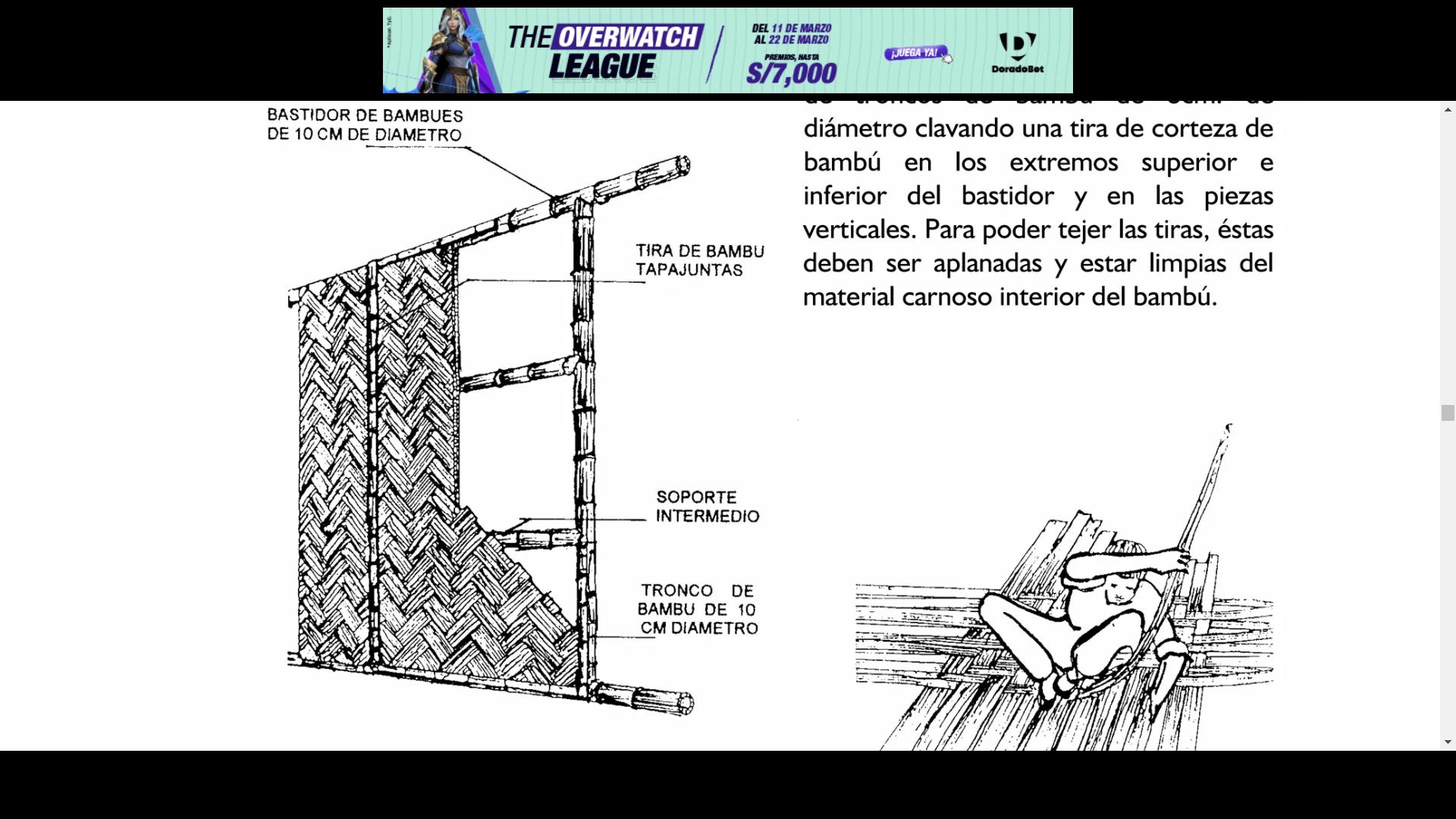 Este método consiste en el tejido de hojas de palma o irapay para colocarlos tanto en las patredes como en los techos de las viviendas, ya que esto ayuda a un conford térmico ayudando a mantener una buena ventilación.