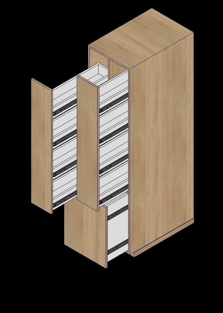 C a j ó n a b a s e d e P i n o , e s p e s o r 1 8 m m c o n c o r r e d e r a e x t r a í b l e d e c i e r r e l e n t o 8 0 c m .