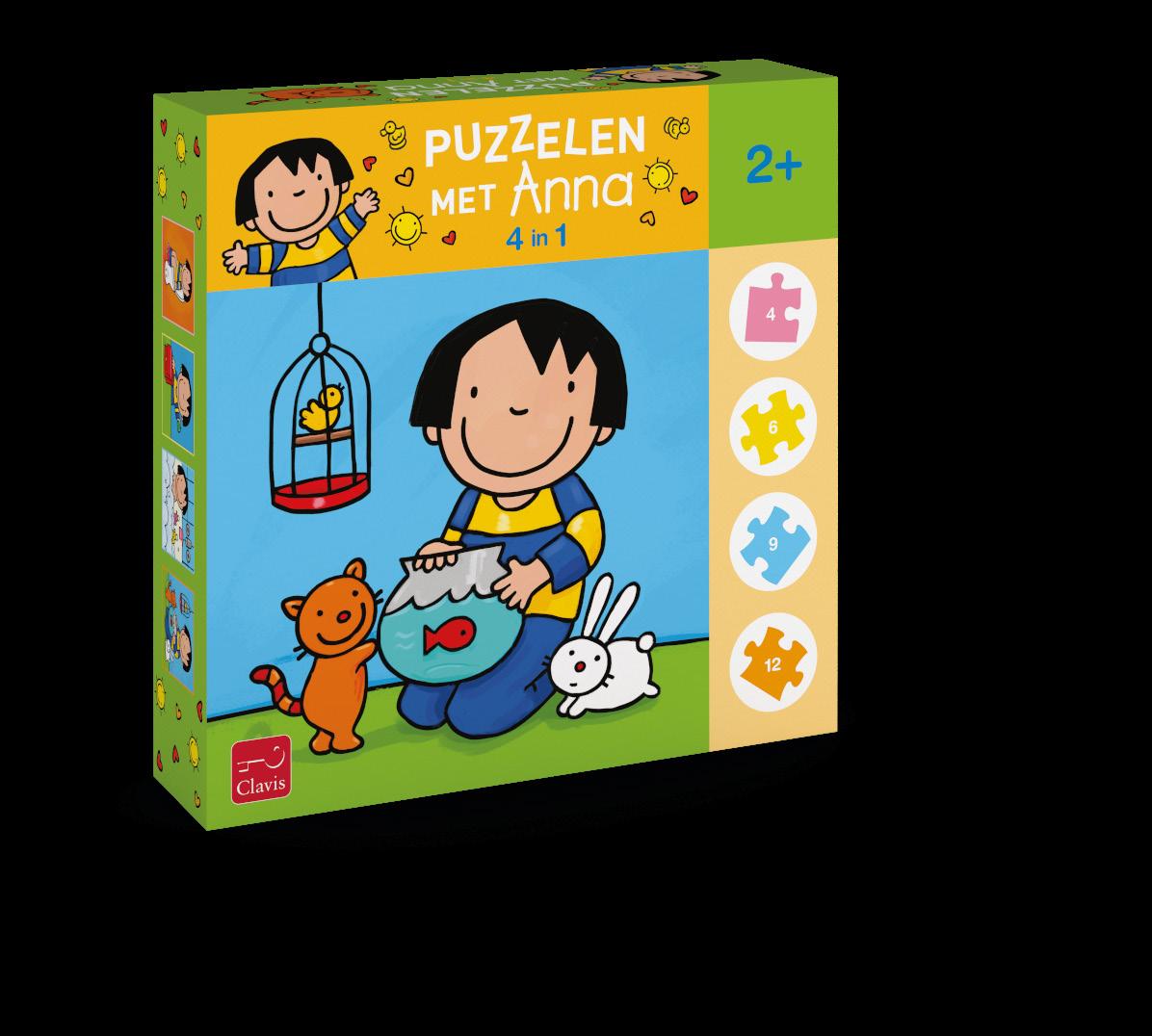 Elke doos bevat 4 puzzels van 4, 6, 9 of 12 stukjes.