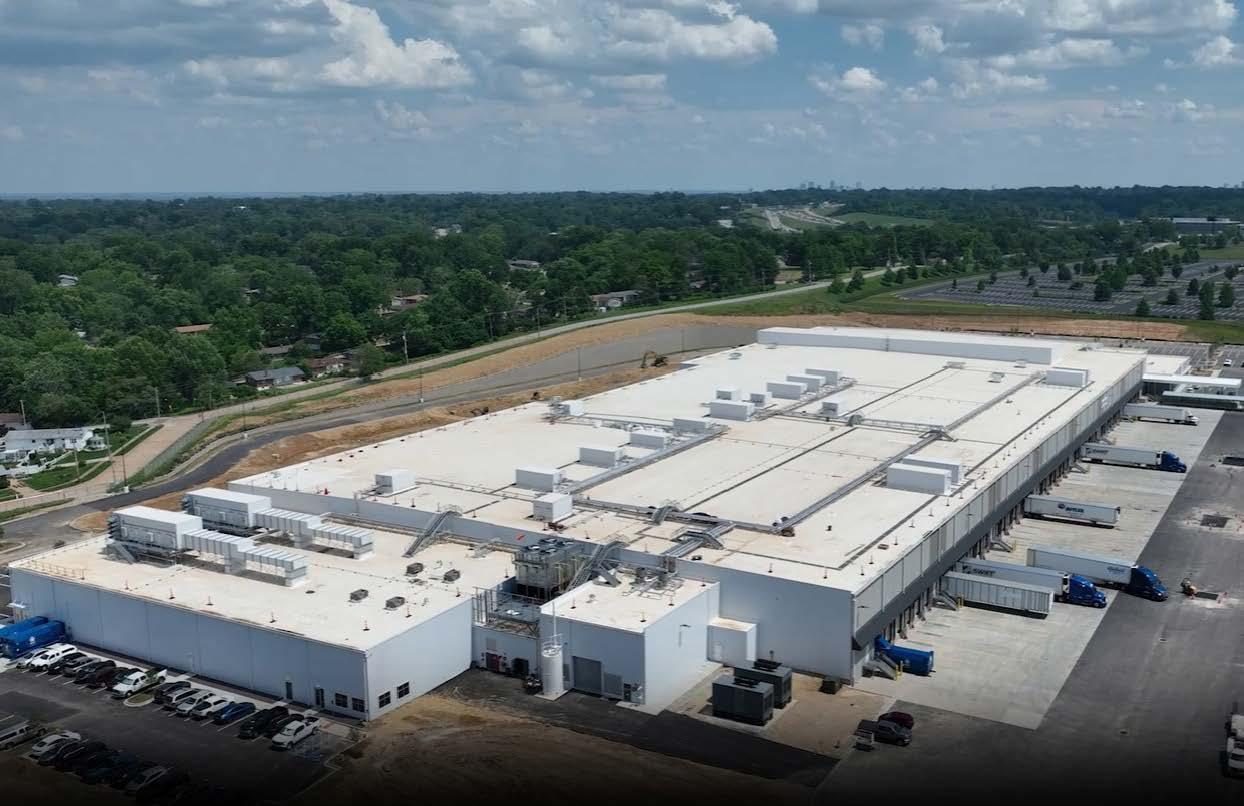 This 415,000-square-foot refrigerated distribution center in Carthage, Missouri is a fully turnkey design-build project delivered by Clayco, and its in-house engineering and architectural partner LJC. The insulated metal panel structure is a greenfield project that includes office and sitework. The automated warehouse will use autonomous guided vehicles to pick and load the trucks leaving the cold storage facility.