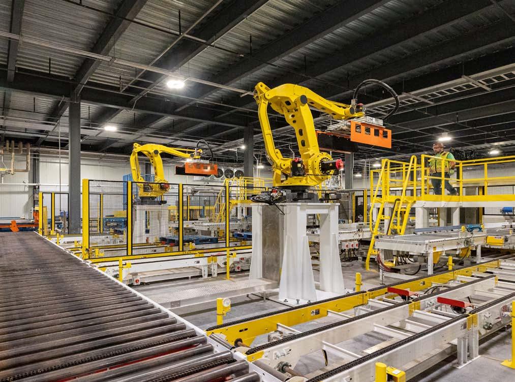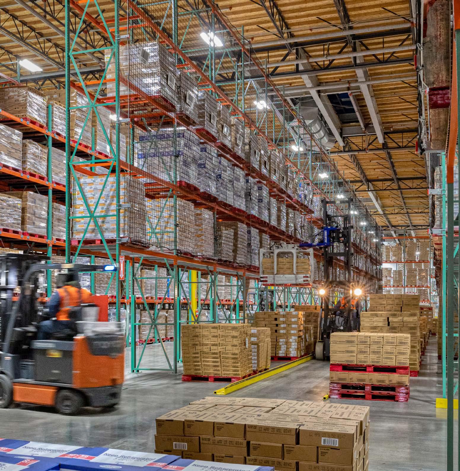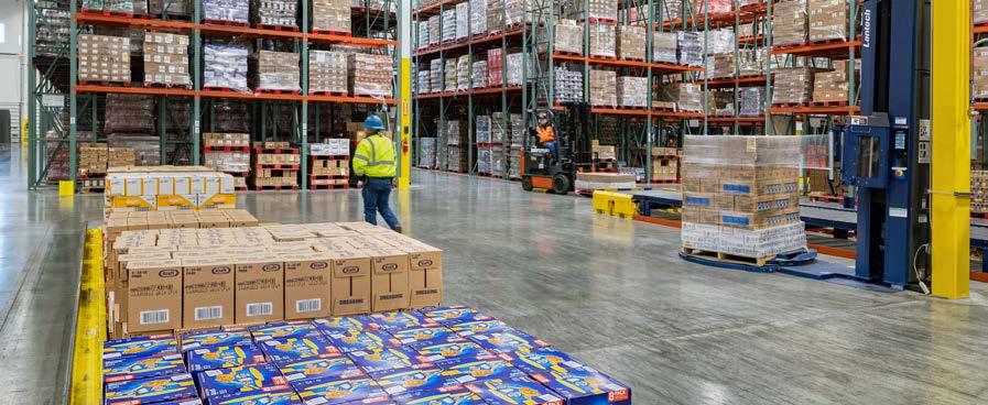 The high-tech finished goods storage area includes the use of an automatic guided vehicle (AGV) system to retrieve, place, load, and unload finished product.