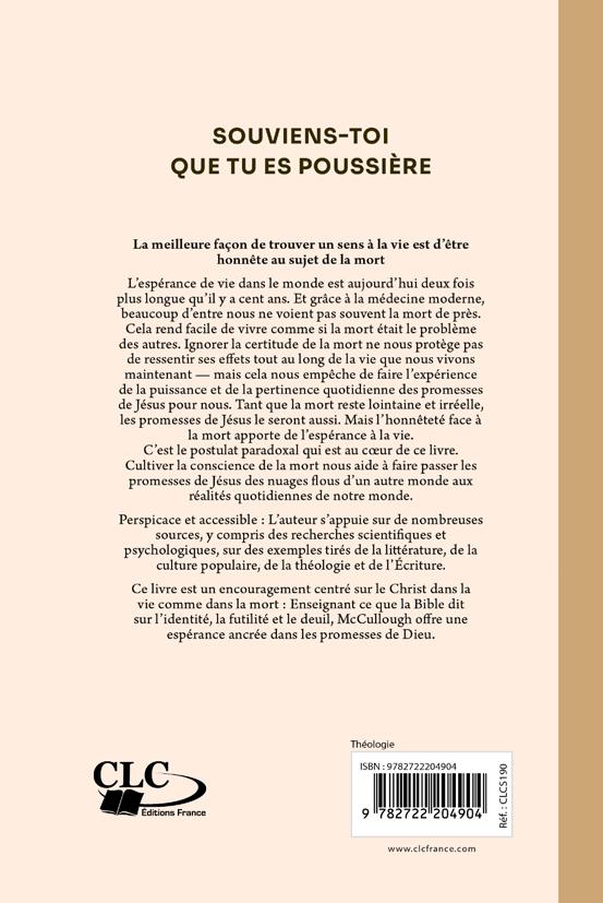 C’est pourquoi cet ouvrage se classe dans le courant d’une vieille tradition de pensée chrétienne connue sous le nom de memento mori, c’est-à-dire « souviens-toi que tu vas mourir ». Cette tradition cherche à nous recentrer sur la réalité de la mort en nous faisant réfléchir à ses implications et à ses conséquences visibles. Le but de cette réflexion est de pouvoir mener une vie authentique, fidèle et pleine de joie jusqu’à notre mort.