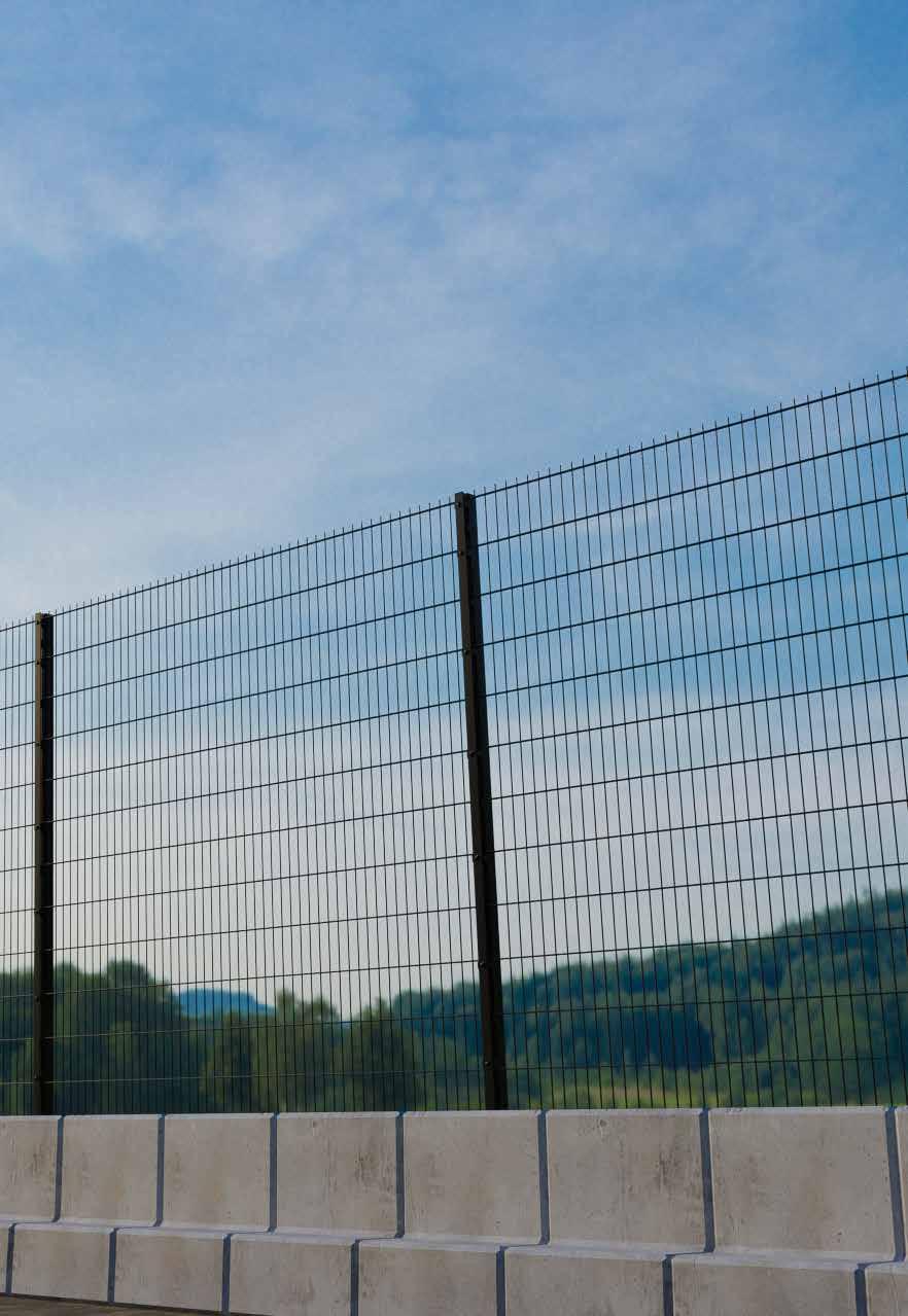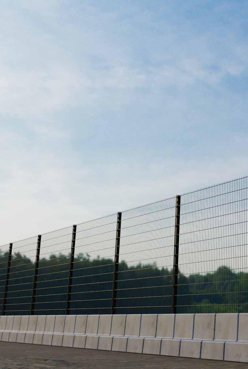 sustainable format. Manufactured from twin 0.24in horizontal wires, either side of 0.2in diameter vertical wires, installed using CLD’s unique FenceSafe Base, made from 100% recycled plastic and 90% recycled UK and European steel, both elements of the system can be used over and over again.