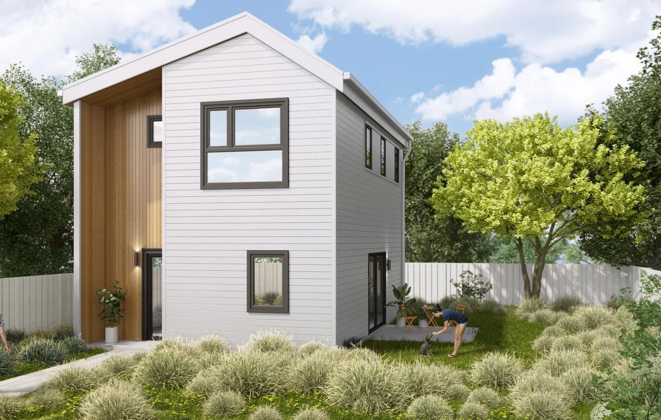 The Zimple residence model provides many opportunities for the residence to be divided into different sections. The original design intention provides a single family residence on the ground level and a mother-in-law suite on the second level. Additionally, the model can be altered to be a single family two story residence, two rental apartments, or renter + owner options.
