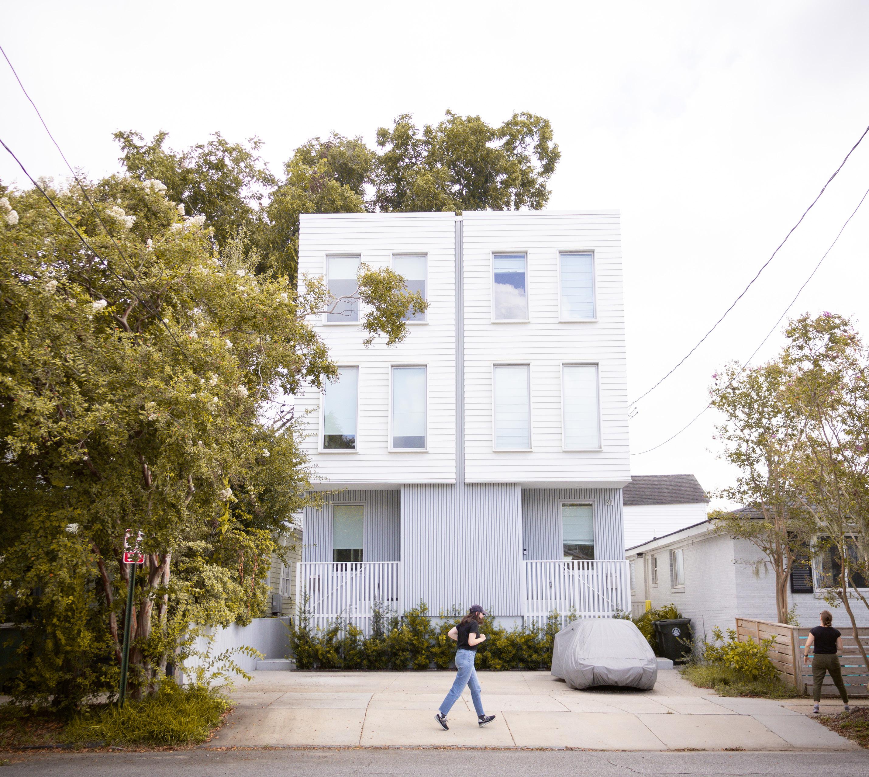 “The first test site for the Starter Home thesis, 3106 St. Thomas is an undersized lot in the Irish Channel neighborhood. Technically a historic district, the Irish Channel is in fact highly diverse in the character of its built environment, filled with low-density historic housing equally as regional industrial infrastructure. According to the Starter Home argument, the site is all at once a legal definition, an embedded history, a record of activity, and a physical entity. A Starter Home expects no tabula rasa, and in fact relies on the specificities of site in order to function at its best, financially, urbanistically, and spatially. The overlay of zoning – both impediment and opportunity – guides the design process but also provides the potentiality of the site as Starter Home opportunity. With this in mind, no zoning variances were sought, and in its design, 3106 seeks to take advantage of its preconditions: adjacency to a warehouse and a two-family home, a highly restricted, long and narrow footprint, and a rather generous maximum height of forty feet.”