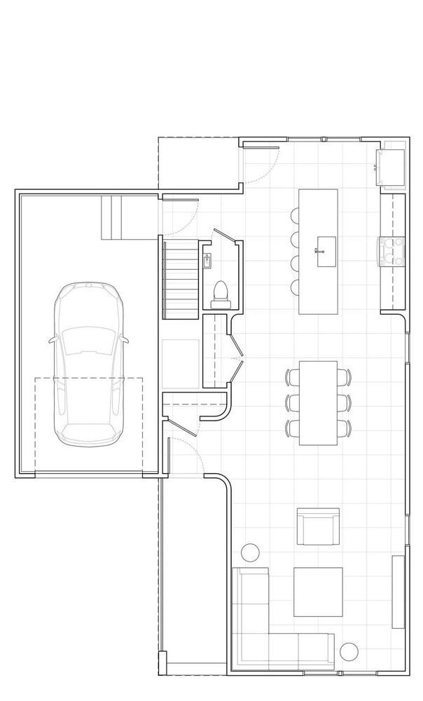 Three generations occupy a site with one existing home and one new construction; of paramount importance in the development of the site and new structure is fostering a mutually beneficial relationship between structures on site, while respecting existing uses. Building massing helps to frame the outdoor environment according to a desire for a variety of types of open spaces, from quiet and private, to open and active. Areas allotted for guest uses are oriented towards the street, where they can be accessed without passing through main living or outdoor family areas. Physical and visual thoroughfares across the site and building are punctuated by areas flexible enough to absorb a range of activities, whether individual or collective.