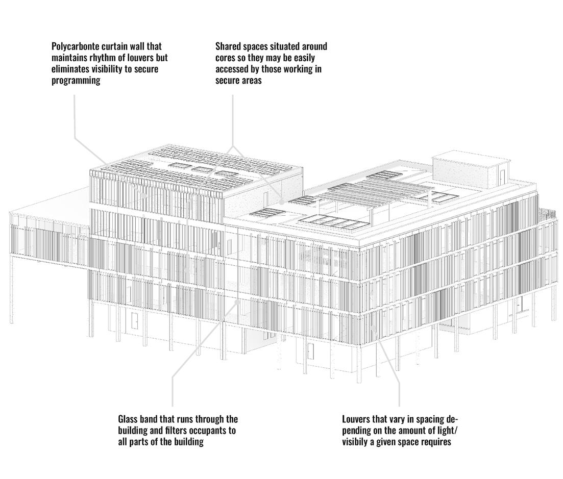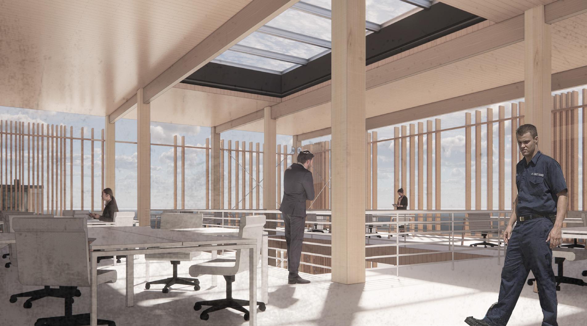 Base Command is the communal hub for the proposed Coast Guard site. It has a permeable presence on the site and acts as a transitional space from work to life. Our Statement