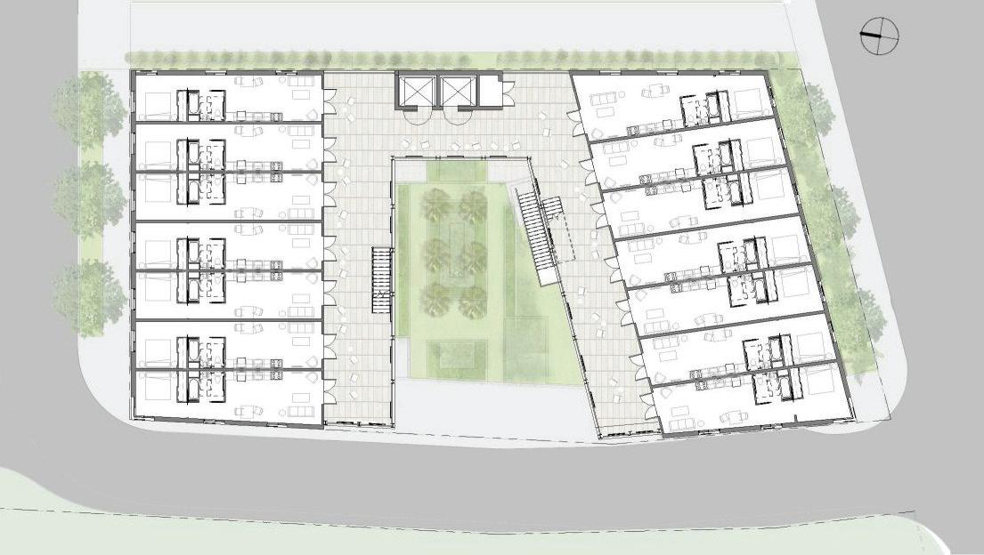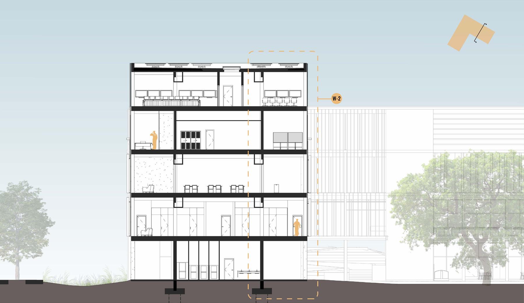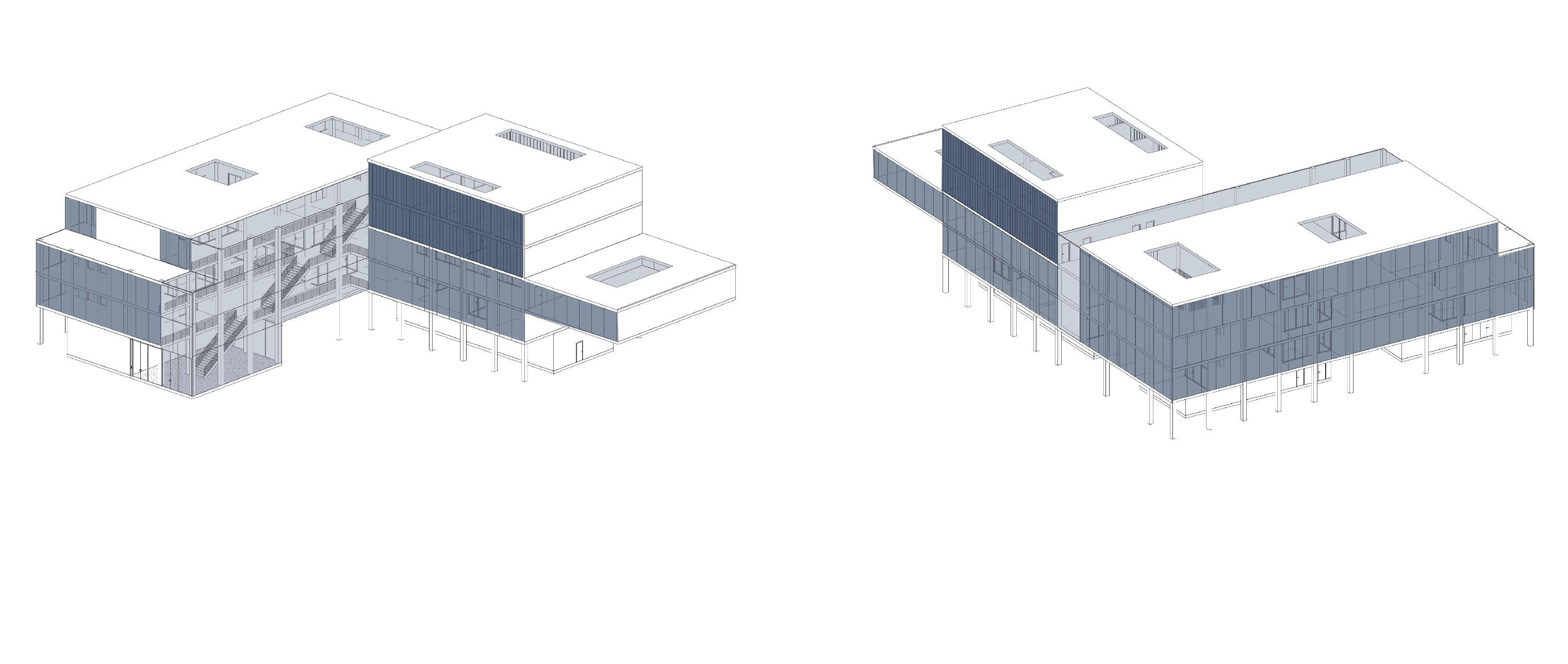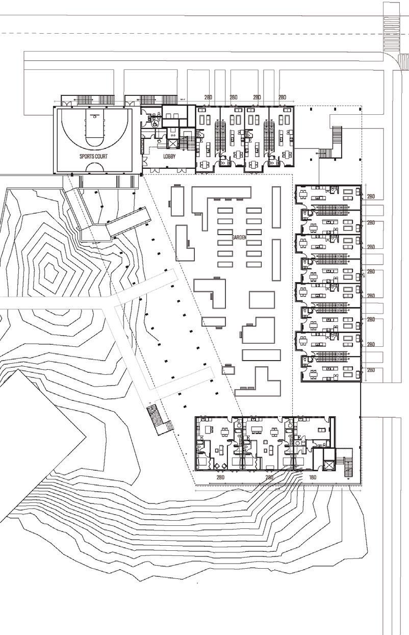At the start of this project, we recognized the minimal importance of working with the floodplain program on the first floor, and manipulating the topography means that parts of the site are elevated above flood levels. In all buildings, any portion of the building below the plane is a concrete structure podium.
