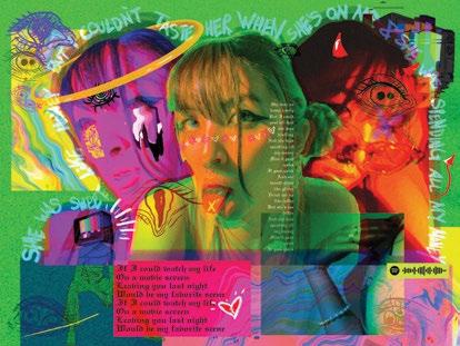 Katherine Justiniani, Synesthesia Rotation , Photo manipulation, 2022. Each portrait is a visual depiction of how a song looks to the artist. Honorable Mention Photography, Cash prize awarded $75