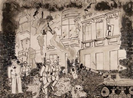 Aurora Laux, Hide-and-Seek in the Brushswine’s Den , Ballpoint pen and permanent marker on illustration board, 2021 Best in Merit Scholar, Cash prize awarded $50