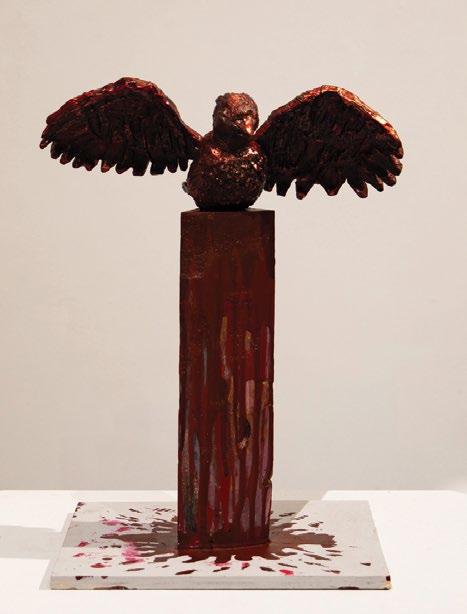 The pieces in this exhibit deal with a lot of my inner turmoil and experiences, in the way that I see and feel them. Some topics include love, loss, mortality, existentialism, the desire for freedom and my heritage, both lost and found. These pieces analyze the world with a critical, yet appreciative, lens. Some of these concepts aren’t always understood at first, with canvases and sculptures drenched in heavy symbolism and deeper meaning. These meanings, however, become more solidified and understandable as each piece ties into one another.