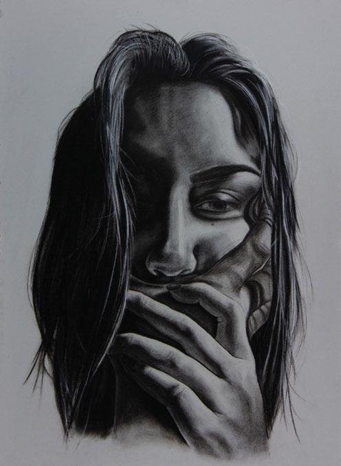 Stephanie Hering, Inescapable Guidance III , Charcoal on paper, 2022 Best in Merit Scholar, Cash prize awarded $50