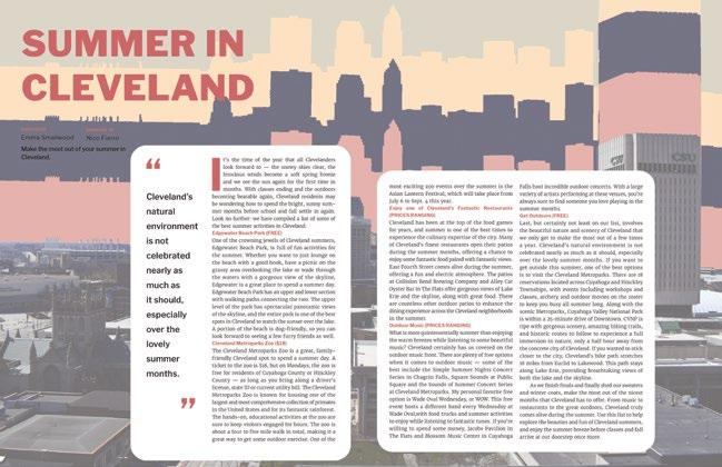 My art is influenced by everything I experience, and music is one of those things. The image of Hozier is composed of some of his lyrics that I find particularly profound or compelling. His music is music that I listen to on a daily basis, and it inspired me to make the poster. I also take inspiration from being an English major as well. The Vindicator article, written by Emma Smallwood, highlights the beauty of Cleveland in the summertime. Reading the article alone made me excited for the summer, so I knew I had to design it. Working with the composition is exciting and fun, and getting to make something visually interesting from just words ties together my majors and emphasizes just why I study all three.