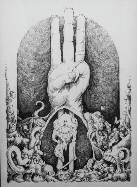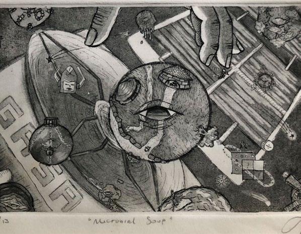 Existentialism is the idea that our purpose in life is completely controlled by ourselves rather than outward forces. My work explores the concept of existentialism and related ideas such as the manipulation of reality, free will and questioning what is possible. I make my art as a way to express ideas that I have difficulty portraying with words. I use various media and techniques for my work, including drawing, painting, welding, woodwork and clay sculpture. With influences such as artists M.C. Escher and Alberto Giacometti, and writers like Franz Kafka, I create works of art that lead the viewer to ruminate on these aforementioned ideas.