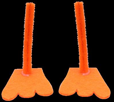 6. Cut two 4cm lengths of chenille stem. Use a glue gun to attach one length to each of the felt feet, standing upright. Allow to dry.