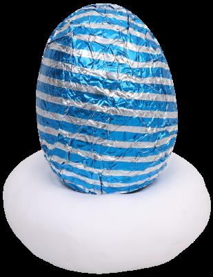 4. Create some bunny ears with more clay. Attach to the front of the clay base and mould against the easter egg. Softly push the clay together to join. Gently remove the egg and smooth out the clay.