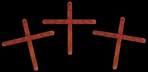 6. Paint six popsticks brown and allow to dry. Glue two popsticks together in a cross shape. Repeat until you have three cross shapes. Allow to dry.