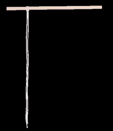 1. Cut a 30cm length of white embroidery thread. Fold the length in half and attach it to a wooden dowel using a cow hitch knot.