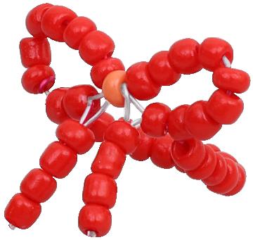 5. Loop the wire and thread back up through three of the beads and into the first bead of the bow on the same side.