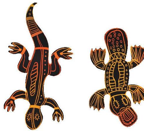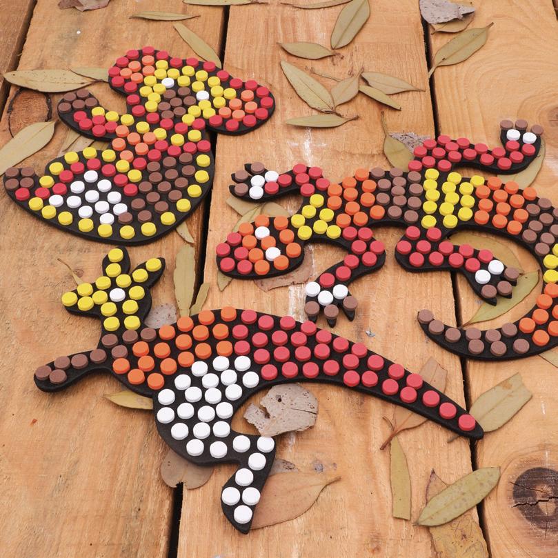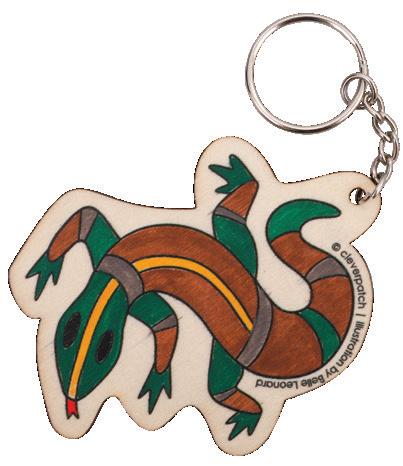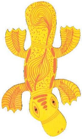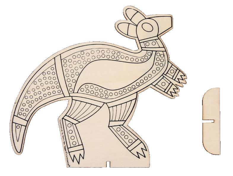 4 assorted designs per set created by Indigenous artist Kerri-Ann Taggart. Plain for you to create. Lizard measures 17.5 x 9.5cm. 3mm plywood.