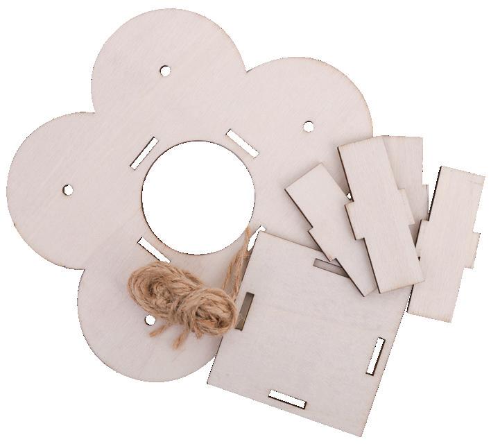 Plain for you to create. Supplied flat-packed for easy self-assembly. Measures 20cm in diameter when assembled. Accessories not included.
