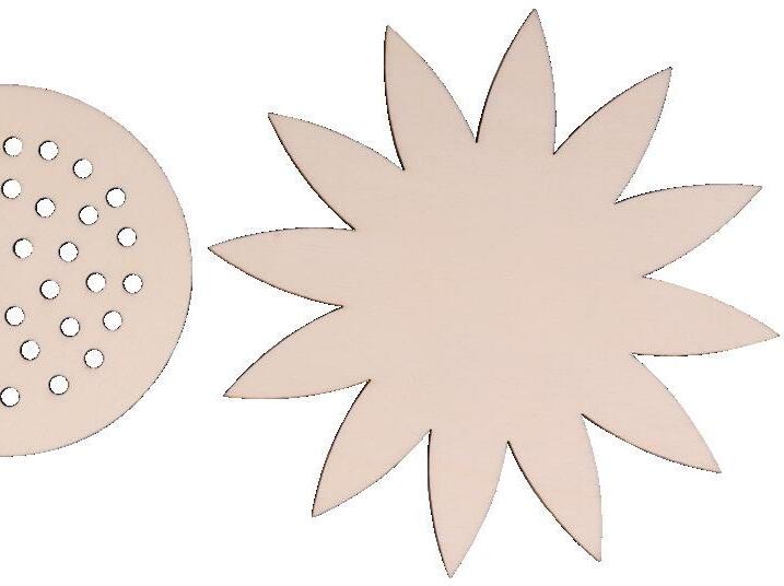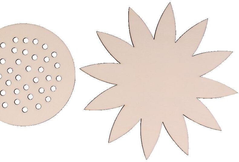 White for you to create. Features slits to create colourful patterns. Measures 9cm in diameter. 210gsm board. Accessories not included.