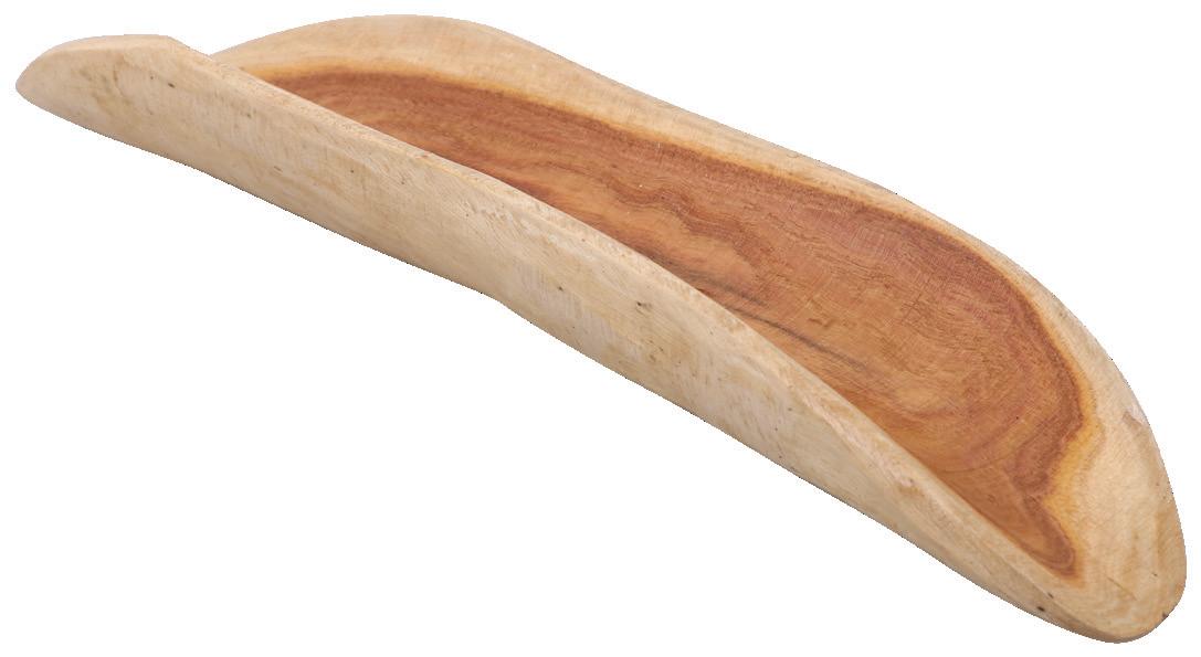 Aboriginal and Australian made. Traditionally used to help carry berries, water and many other items. Wood sourced from the region of Binaal Billa, handmade by Wiradjuri people. Measures approximately 27 x 7 x 5cm. Each piece is unique, made from natural wood with individual faults and lines. Colour, shape and size will vary.