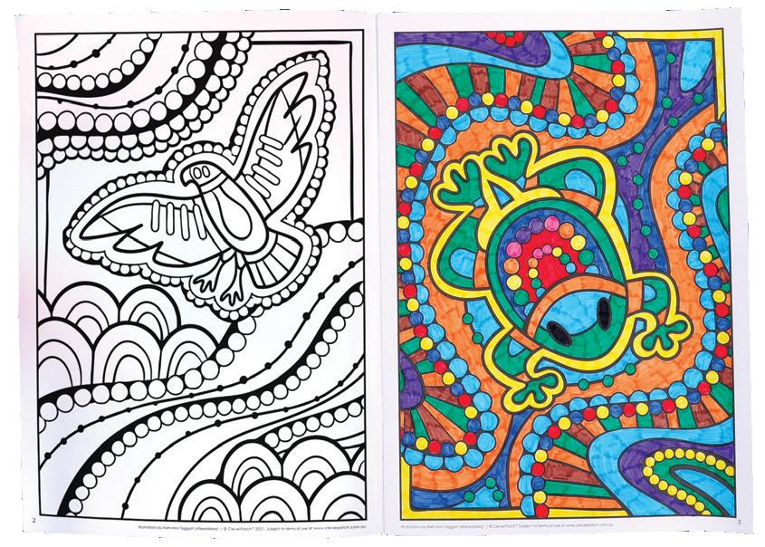 Beautifully illustrated by Indigenous artist Kerri-Ann Taggart. Contains numerous artworks inspired by Australian animals and landscapes. Colour the illustrations with markers or pencils. 14 page book. 12 different artworks. A4 size. 200gsm cover with 120gsm pages.