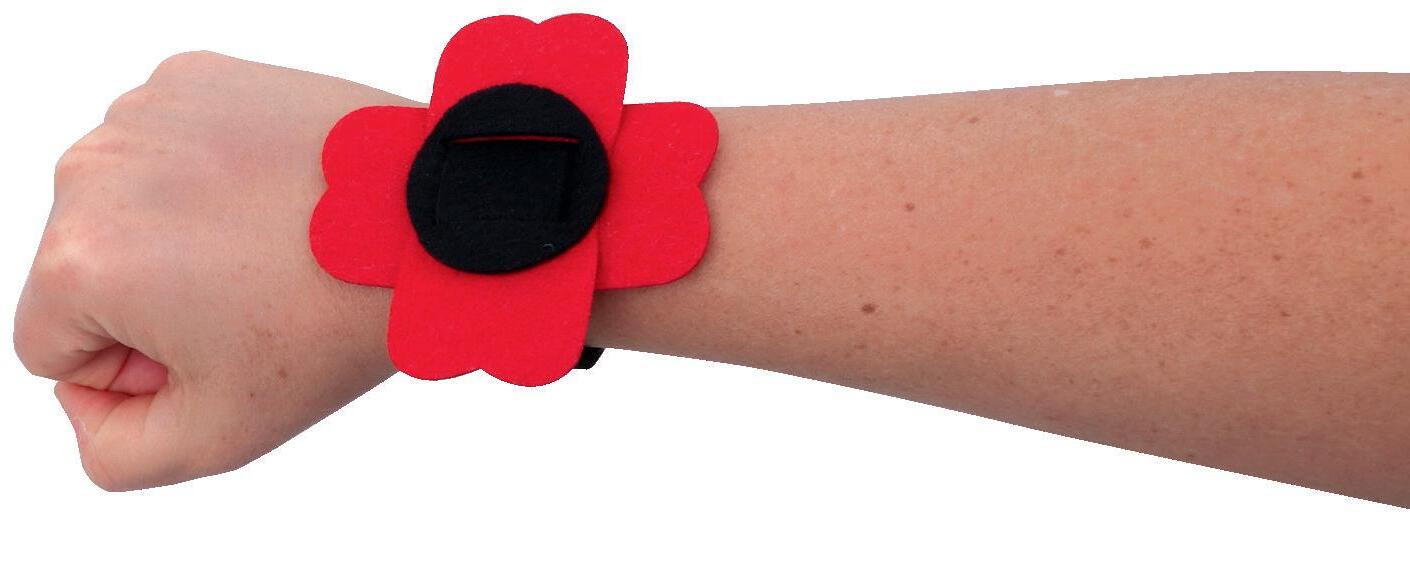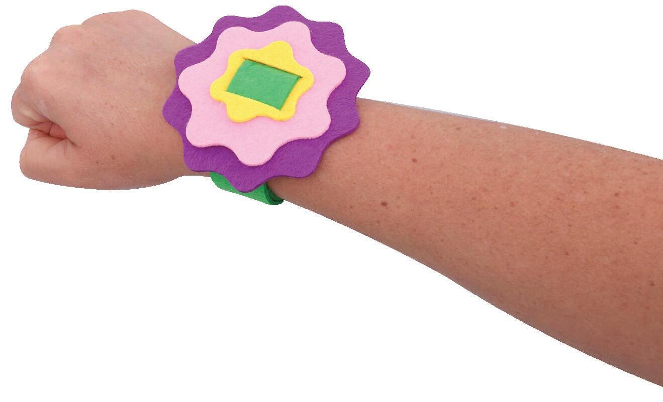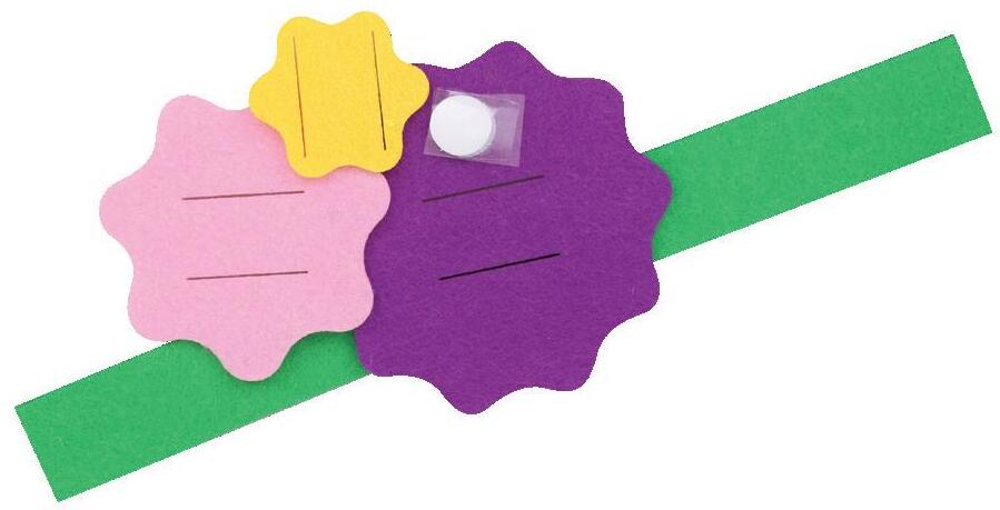 • Assembly Guide Materials make 1 Felt Flower Wristband. Measures 25 x 9cm when assembled. Wristband adjustable to fit most.