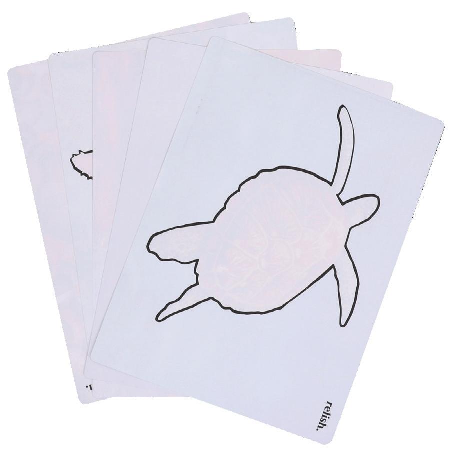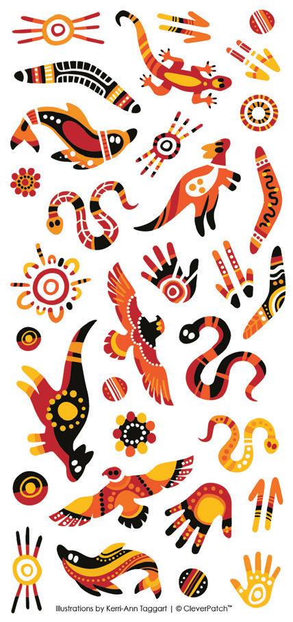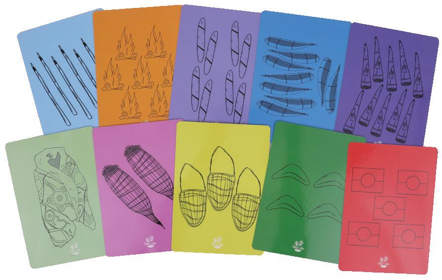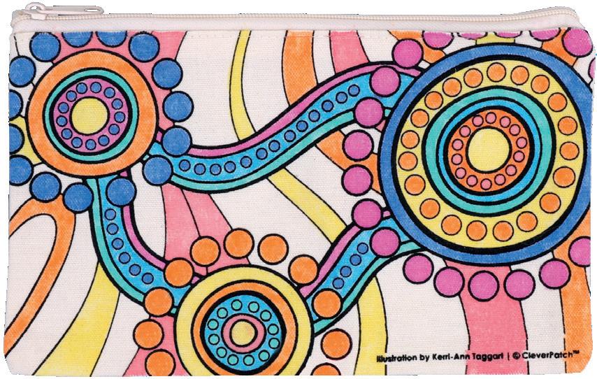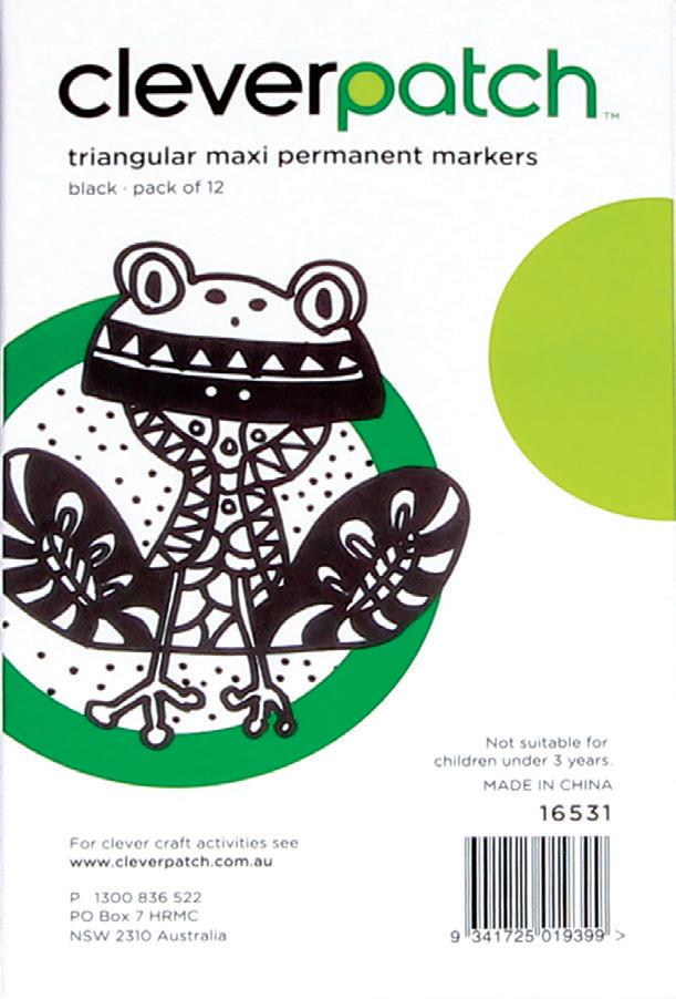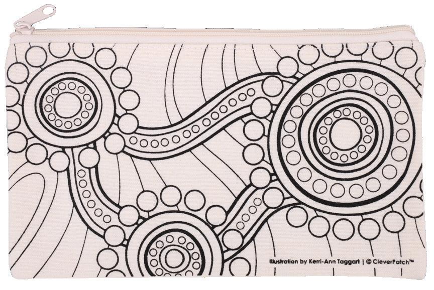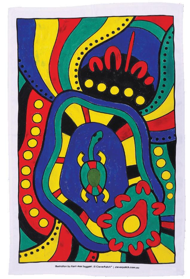 4 assorted designs by Indigenous artist Kerri-Ann Taggart. Plain for you to create. Thick card with black velvet flocking. Decorate with CleverPatch™ Triangular Coloured Markers. A4 size.