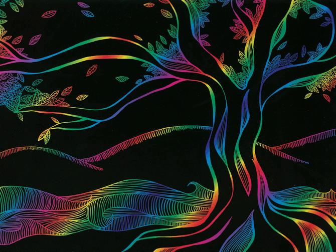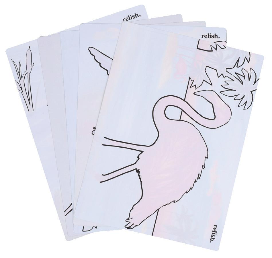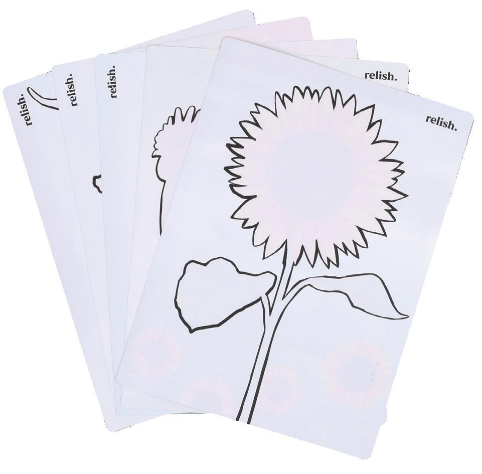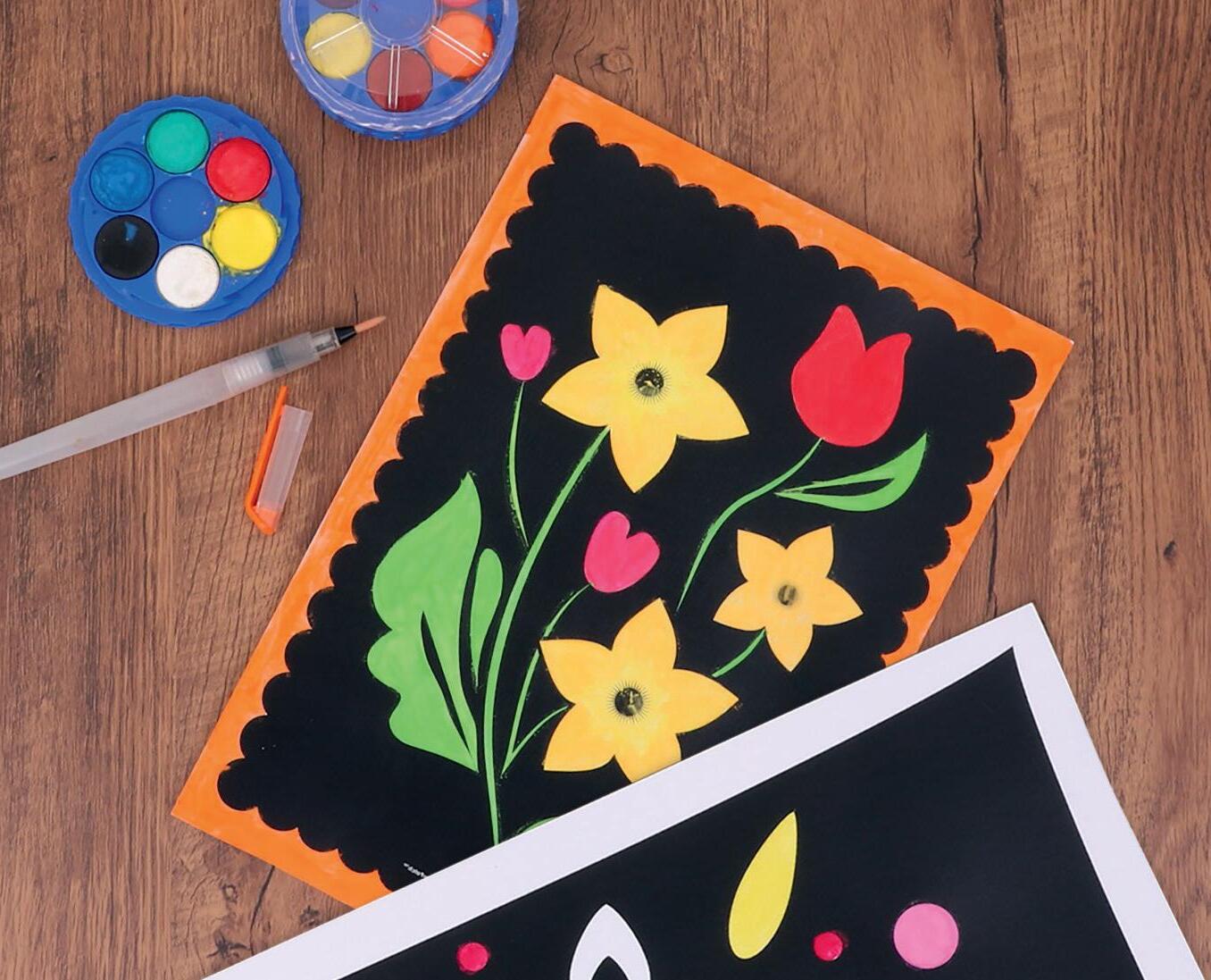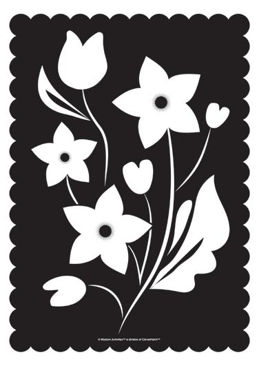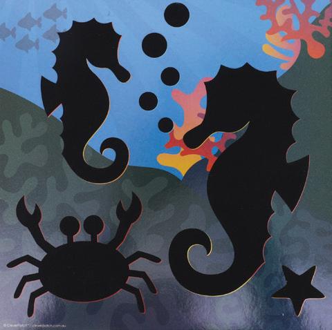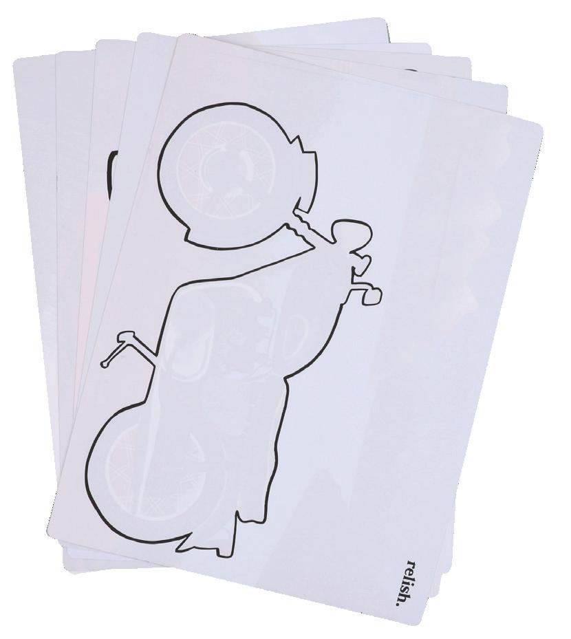 4 assorted designs by Indigenous artist Kerri-Ann Taggart. Plain for you to create. Thick card with black velvet flocking. Decorate with CleverPatch™ Triangular Coloured Markers. A4 size.