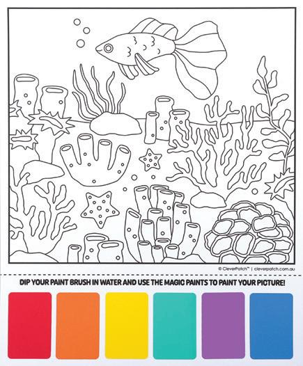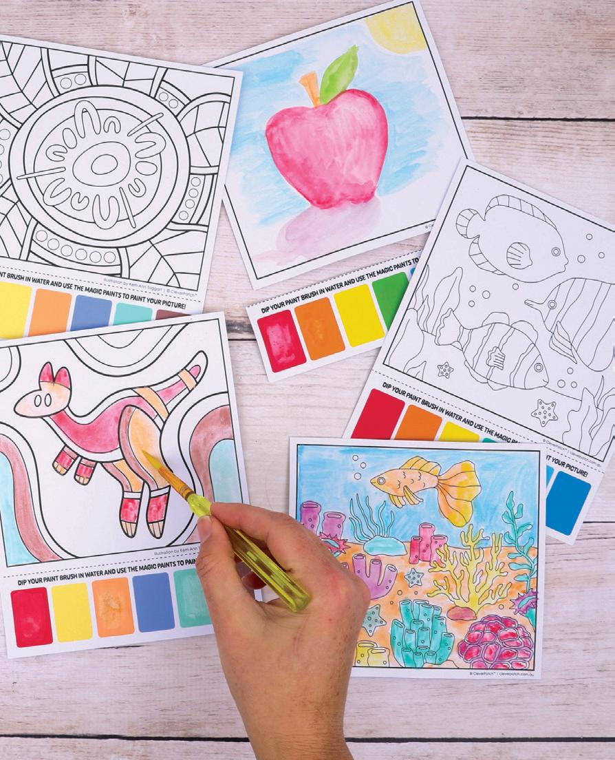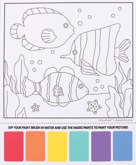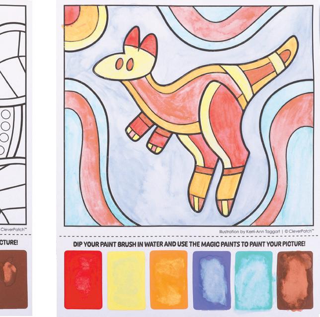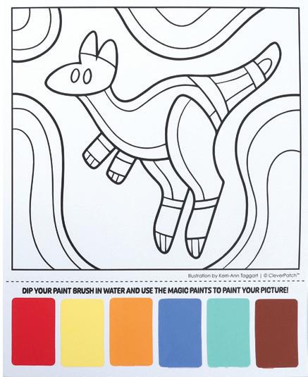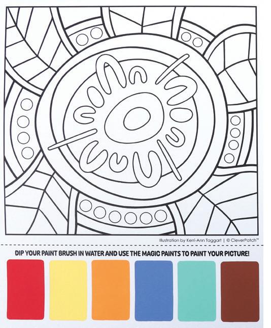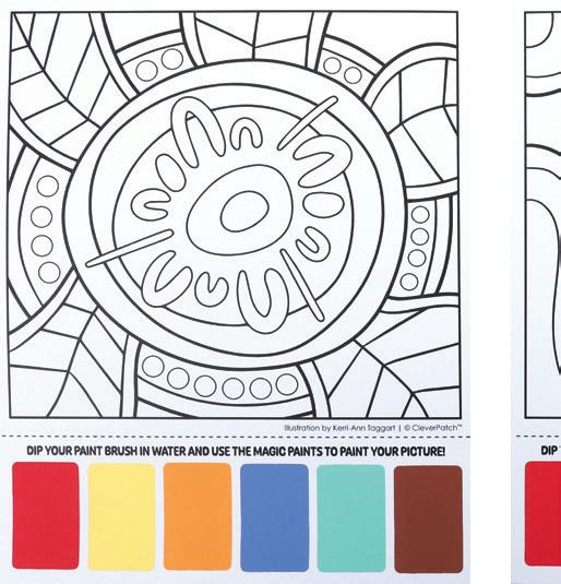 2 assorted designs created by Indigenous artist Kerri-Ann Taggart. Simply use a wet paint brush on the colour swatches supplied on the page to activate the paint, then use to create your magic pictures! Measures 16 x 19.5cm.