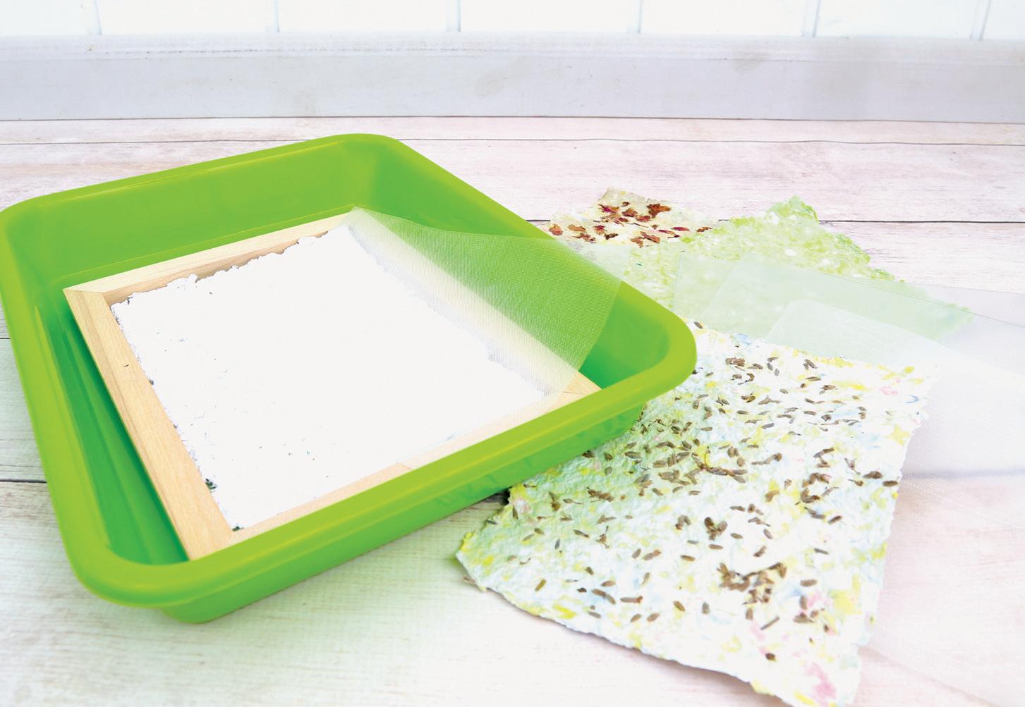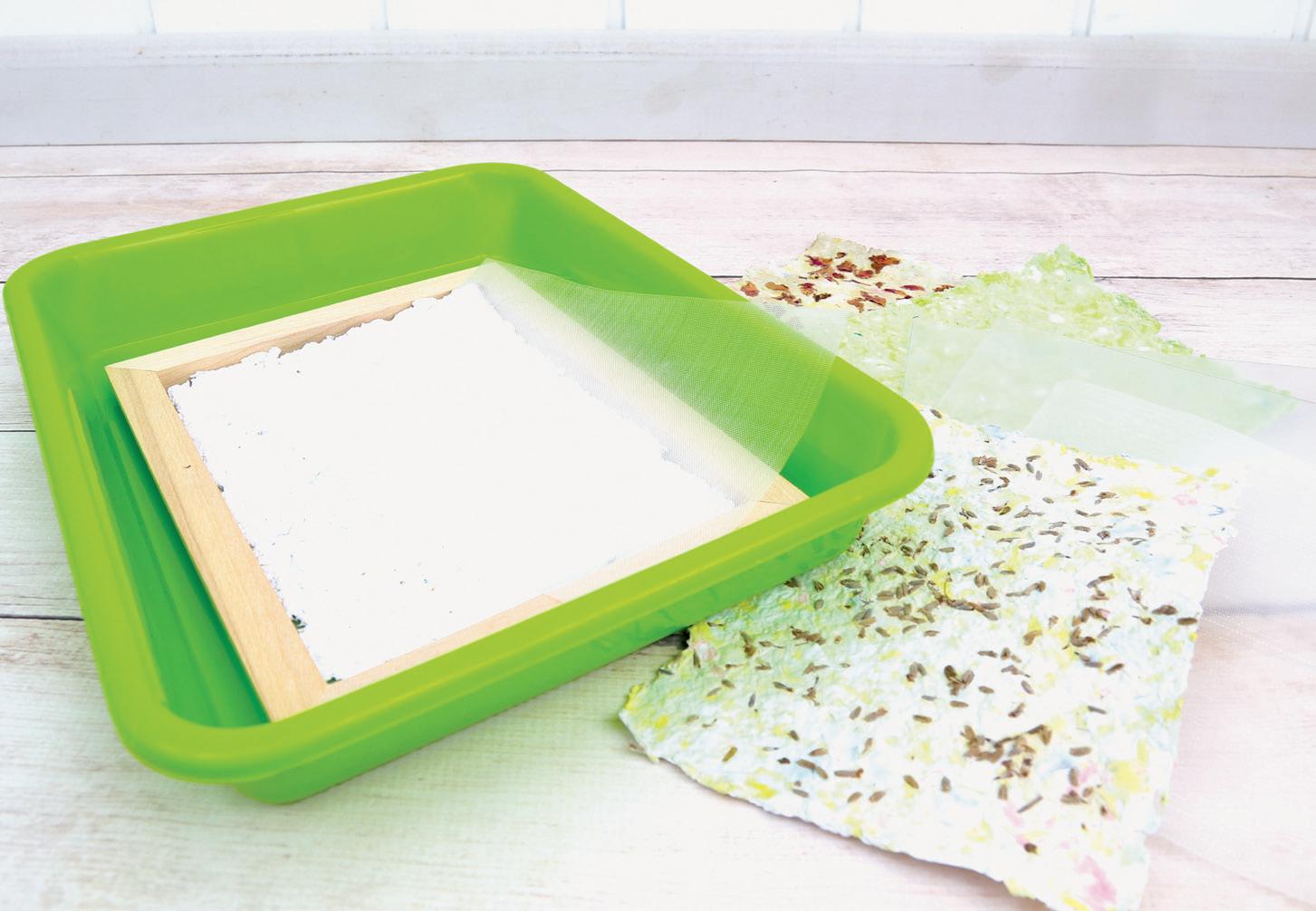 Create your own handmade paper using your waste paper scraps and this handy kit. This pack includes 5 paper kits so 5 people can create paper at the same time. Pack includes 5 wooden screens with mesh, 10 mesh sheets, 10 plastic sheets, 5 plastic trays and guide for use. Wooden frame measures 23.3 x 17.6 x 1.1cm and will create sheets of paper measuring approximately 19.5 x 14cm. Colours may vary. Accessories not included.