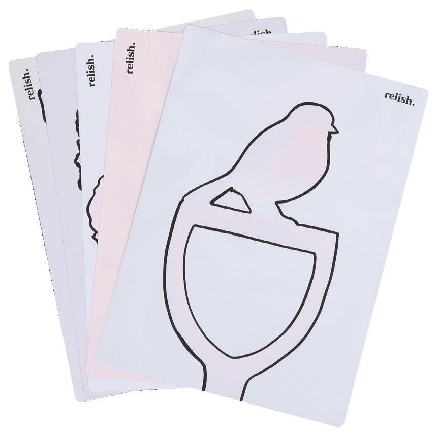 4 assorted pre-printed designs created by Indigenous artist Kerri-Ann Taggart. Plain for you to create. A3 size. 250gsm board.
