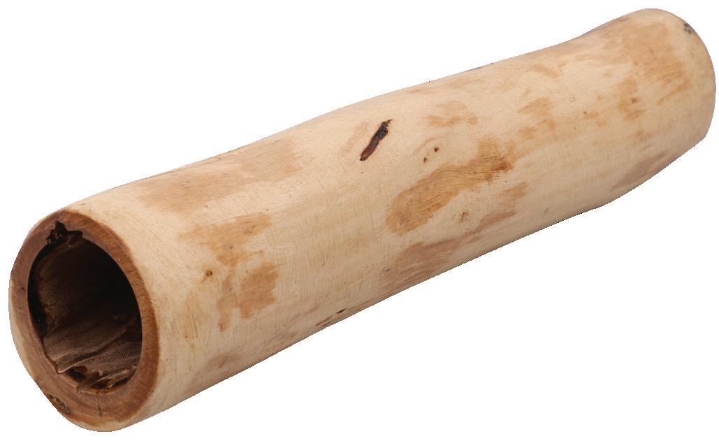 Aboriginal and Australian made. Traditionally used to attract emus during hunting. Just tap your open palm on the hollow end and you will hear the sound of an emu! Wood sourced from the region of Binaal Billa, handmade by Wiradjuri people. Measures approximately 5.5cm in diameter and 30cm long. Each piece is unique, made from natural wood with individual faults and lines. Colour, shape and size will vary.