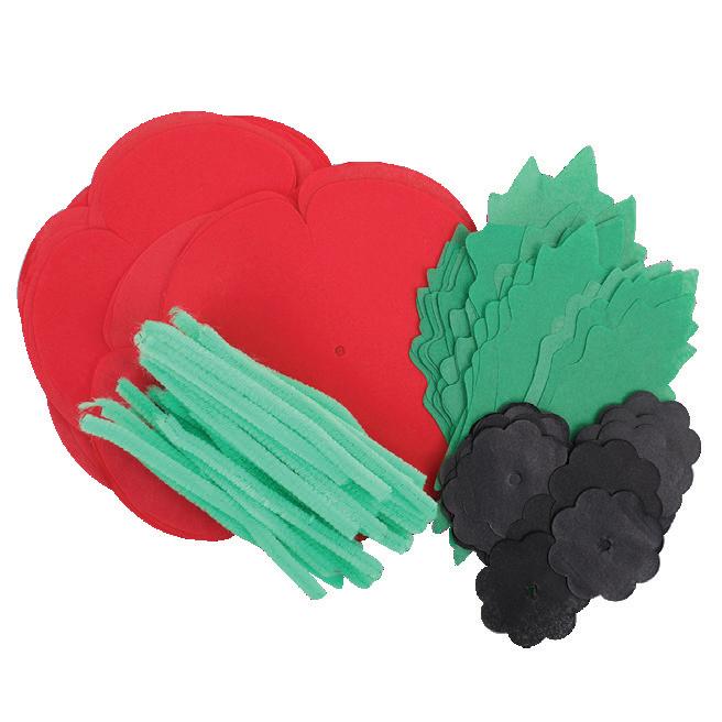 Pack includes assembly guide, tissue paper shapes and chenille stems to make 30 poppies. Measures approximately 13.5cm in diameter when assembled.