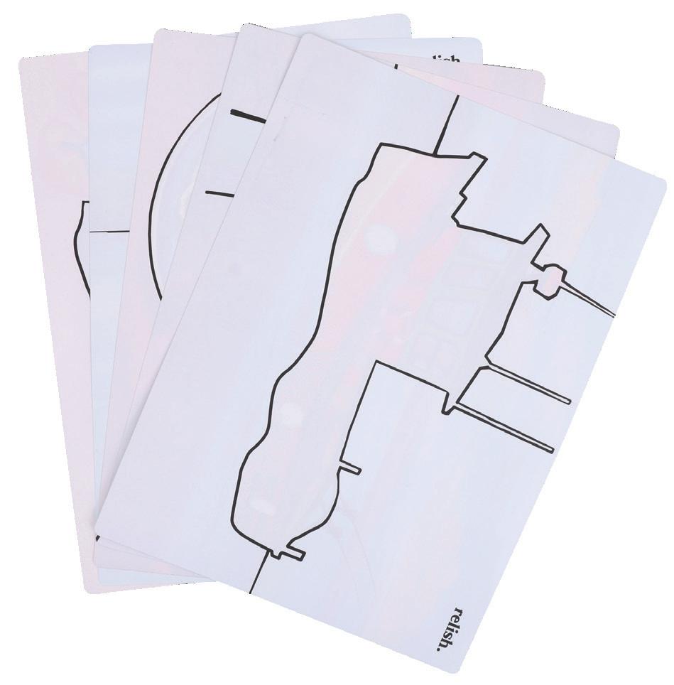 White for you to create. 10 assorted designs. Largest measures 14.2 x 17.7cm. 160gsm. Accessories not included.