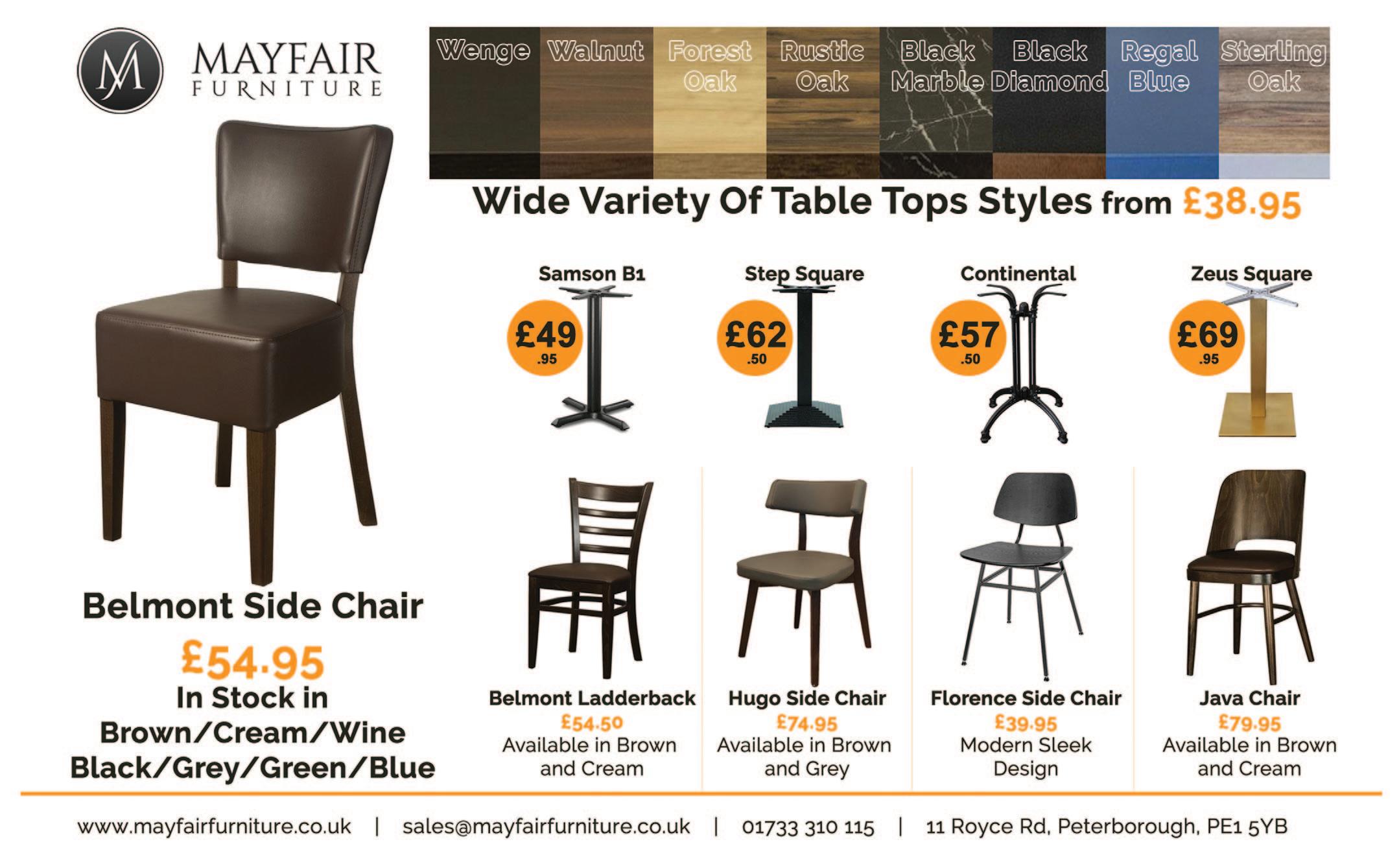 Mayfair Furniture will be celebrating 12 years this year of providing the UK’s fastest and affordable commercial furniture. Supplying all kinds of establishments from high end hotel chains to small local takeaways.