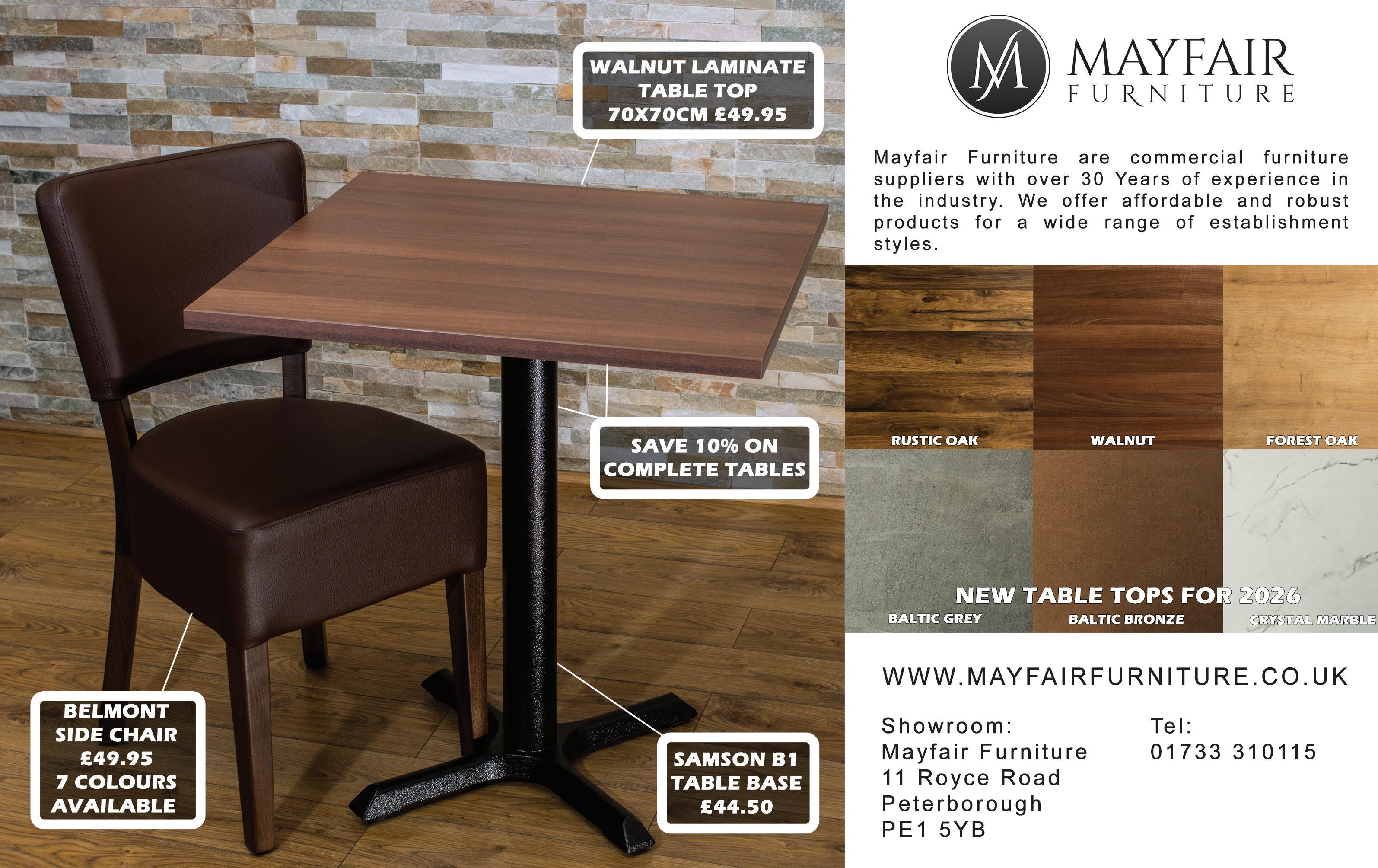 Mayfair Furniture will be celebrating 12 years this year of providing the UK’s fastest and affordable commercial furniture. Supplying all kinds of establishments from high end hotel chains to small local takeaways.