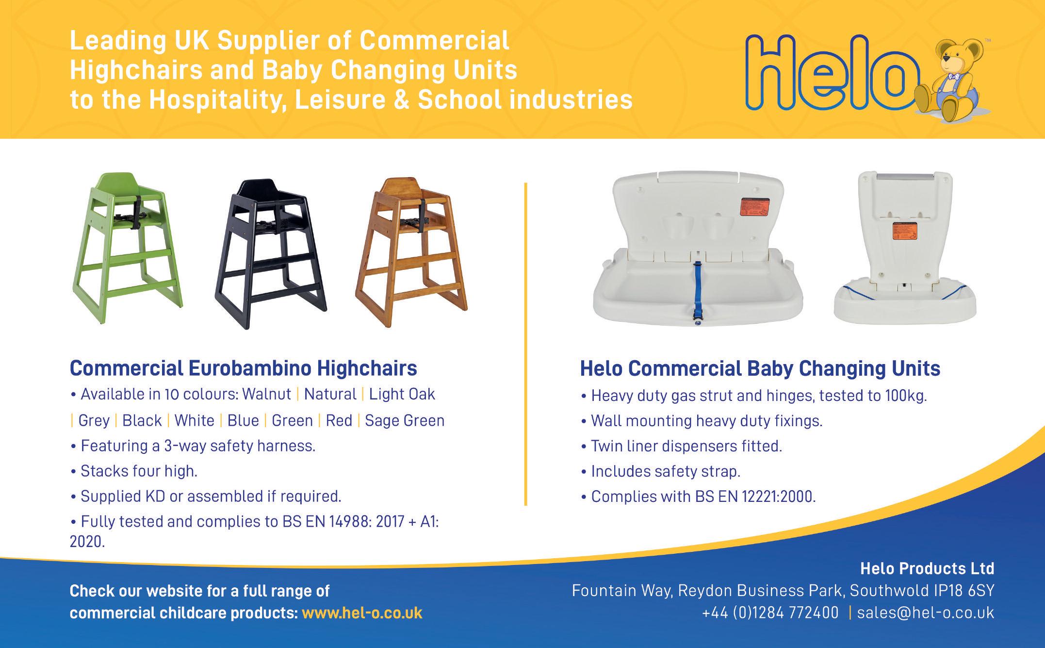 For more information visit Home Helo Commercial High Chairs (www hel o co uk) or give us a call on 01284 772400 or sales@hel o.co.uk and we’ll do what we can to help