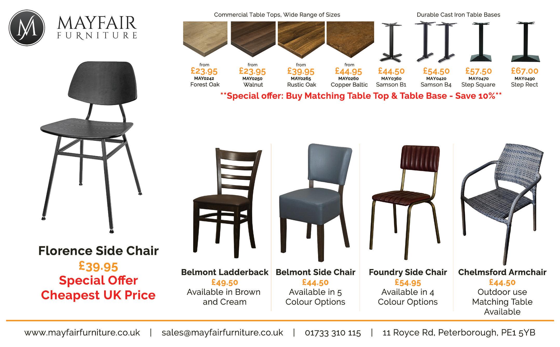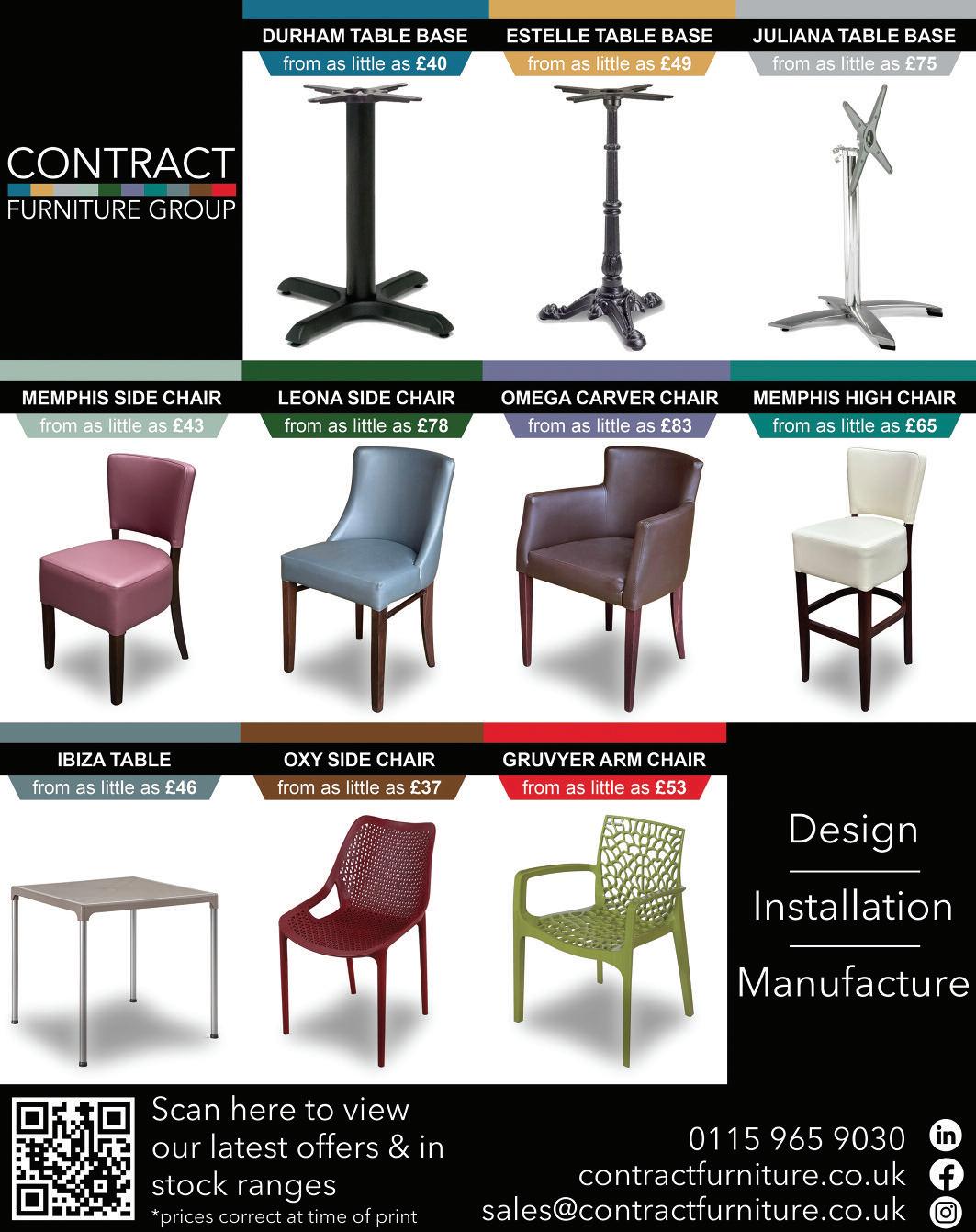Also included is a link to priced chairs and table bases plus a selec tion of priced made to order seat ing in a selection of Faux Leather upholster y colours and wood frame colours These products can also be supplied to customer specifica tion, just ask for details