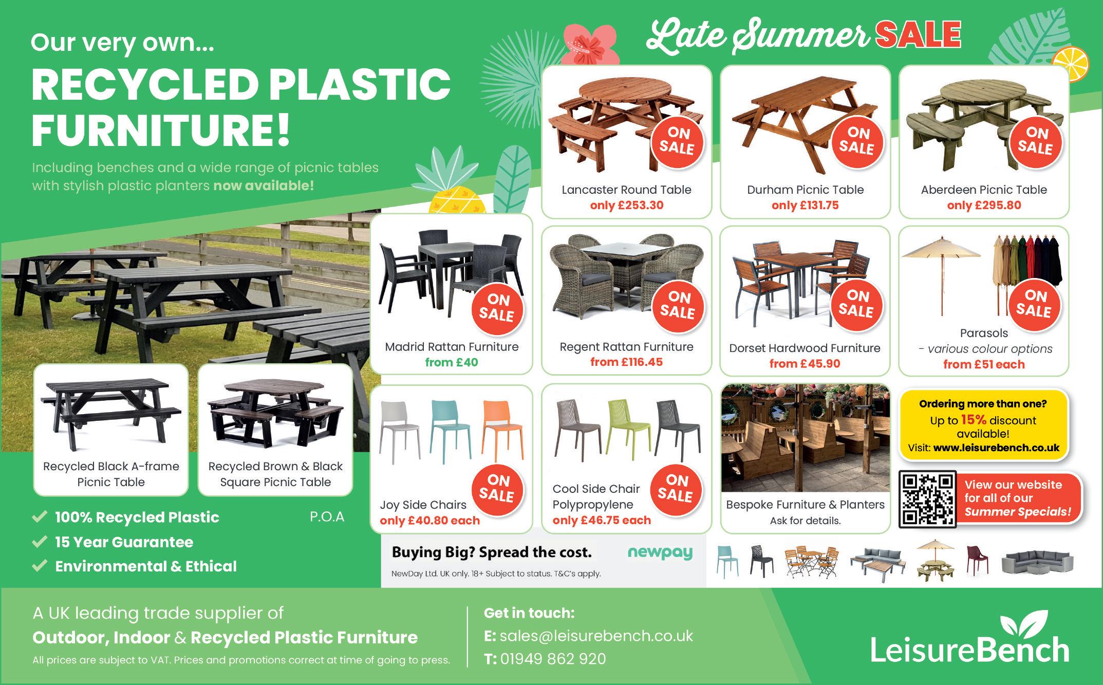 Most made to order indoor seat ing and indoor wooden table bases and tops can be finished to any customer specification Outdoor items offer a variety of colours within the same product style