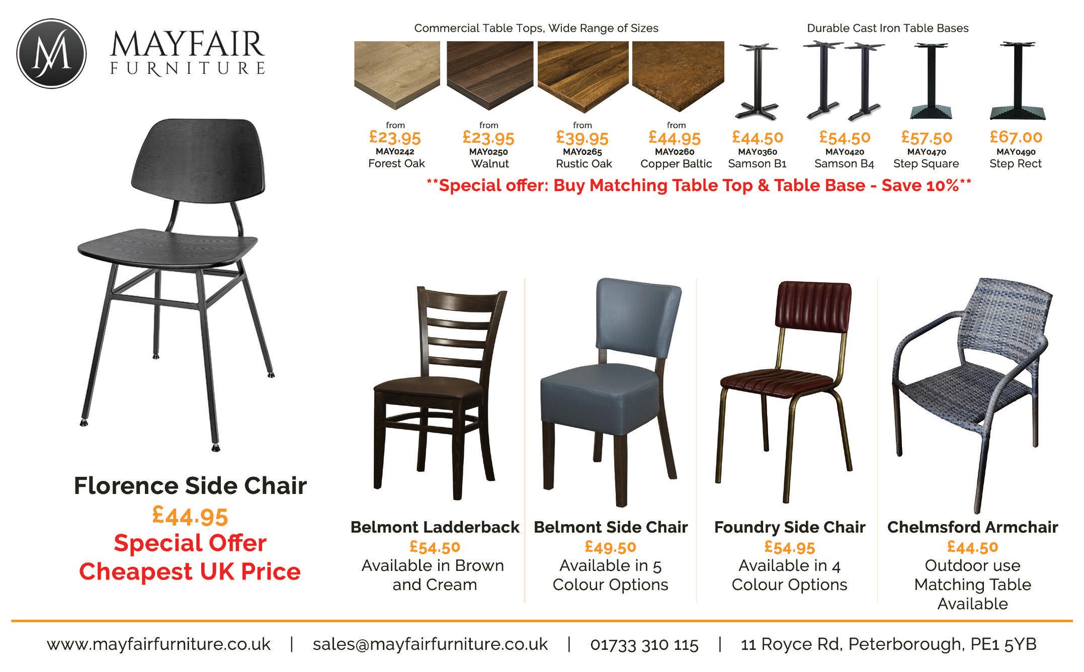Also included is a link to priced chairs and table bases plus a selec tion of priced made to order seating in a selection of Faux Leather upholster y colours and wood frame colours These products can also be supplied to customer specifica tion, just ask for details