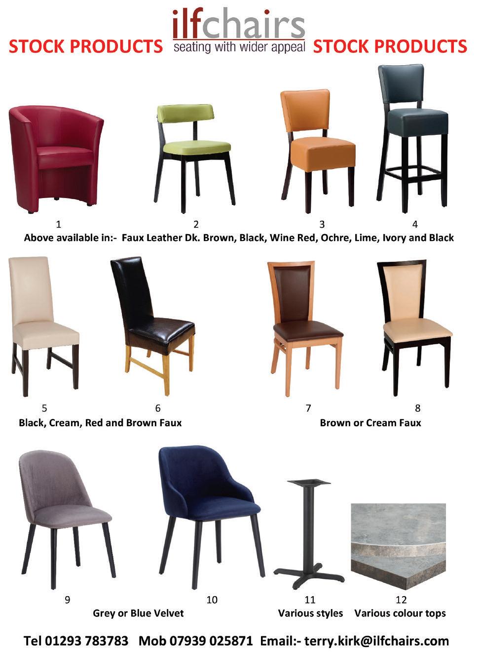 Also included is a link to priced chairs and table bases plus a selection of priced made to order seating in a selection of Faux Leather upholster y colours and wood frame colours These products can also be supplied to customer specification, just ask for details
