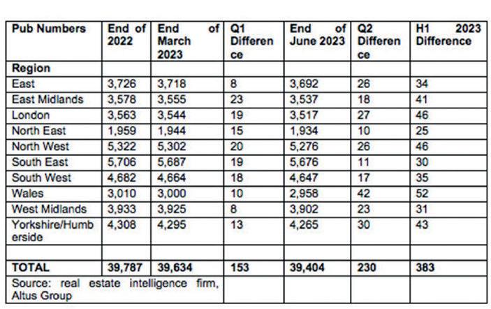 This week is a bit of a mixed bag for the hospitality tourism and the licensed on trade sector A repor t by the Altus group revealed a 50% rise in pubs closing during the second quar ter of 2023 The data, (see page 5), revealed that the number of overall pubs in England and Wales, including those that are either vacant or still being offered to let, dropped to 39,404 in the second quar ter up to June 30 - a fall of 230