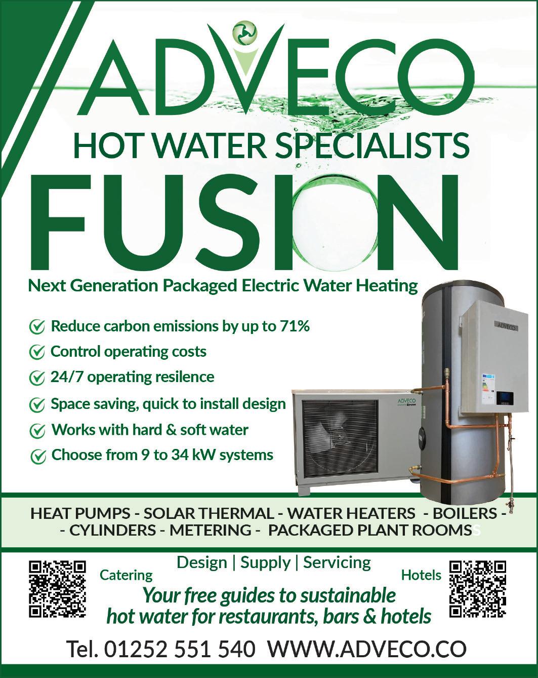 Where hot water demands become a business-critical ser vice , FUSION systems can also incorporation an additional backup immersion (FUSION-Eplus & FUSION-Tplus) for enhanced resiliency Controls are fur ther extended to incorporate SMS output to advise building managers of a fault scenario and automated engagement of the immersion backup to guarantee business-critical hot water supply https://adveco.co/products/live-metering/
